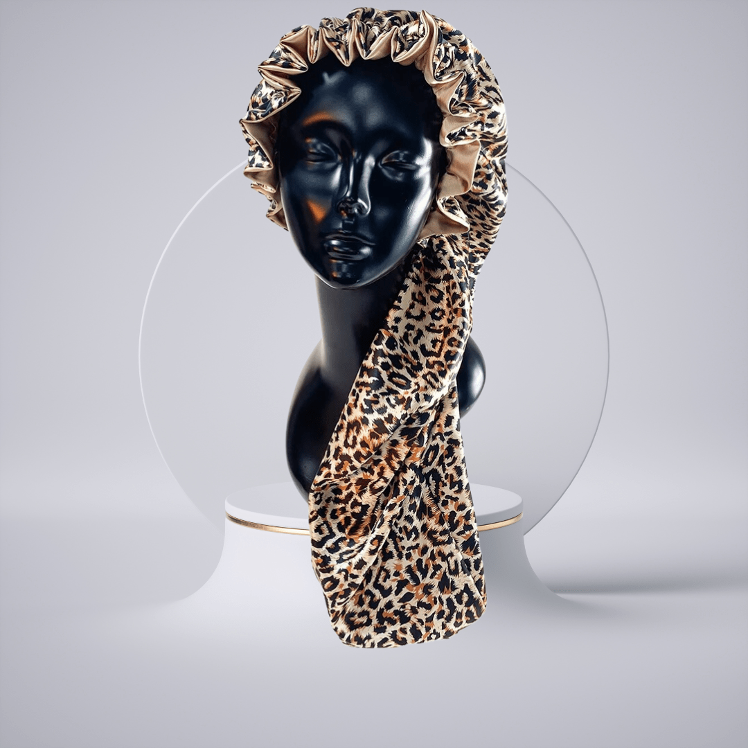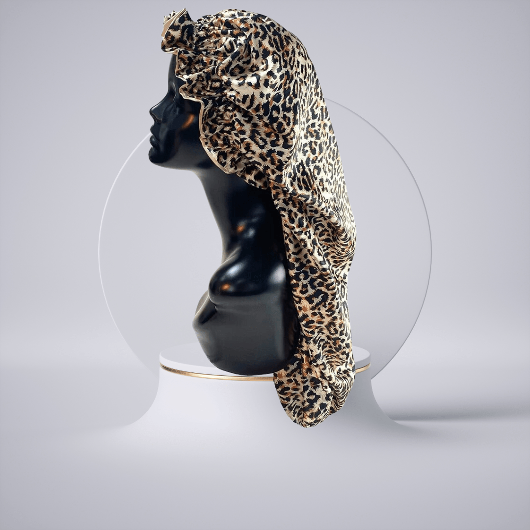 Our statement bonnet is more than an accessory; it's a fashion statement that demands attention. The satin material offers a touch of opulence against your skin, ensuring a delightful blend of indulgence and relaxation as you unwind in style. The carefully chosen prints add a playful and chic element, making this bonnet the perfect companion for your night PJs.