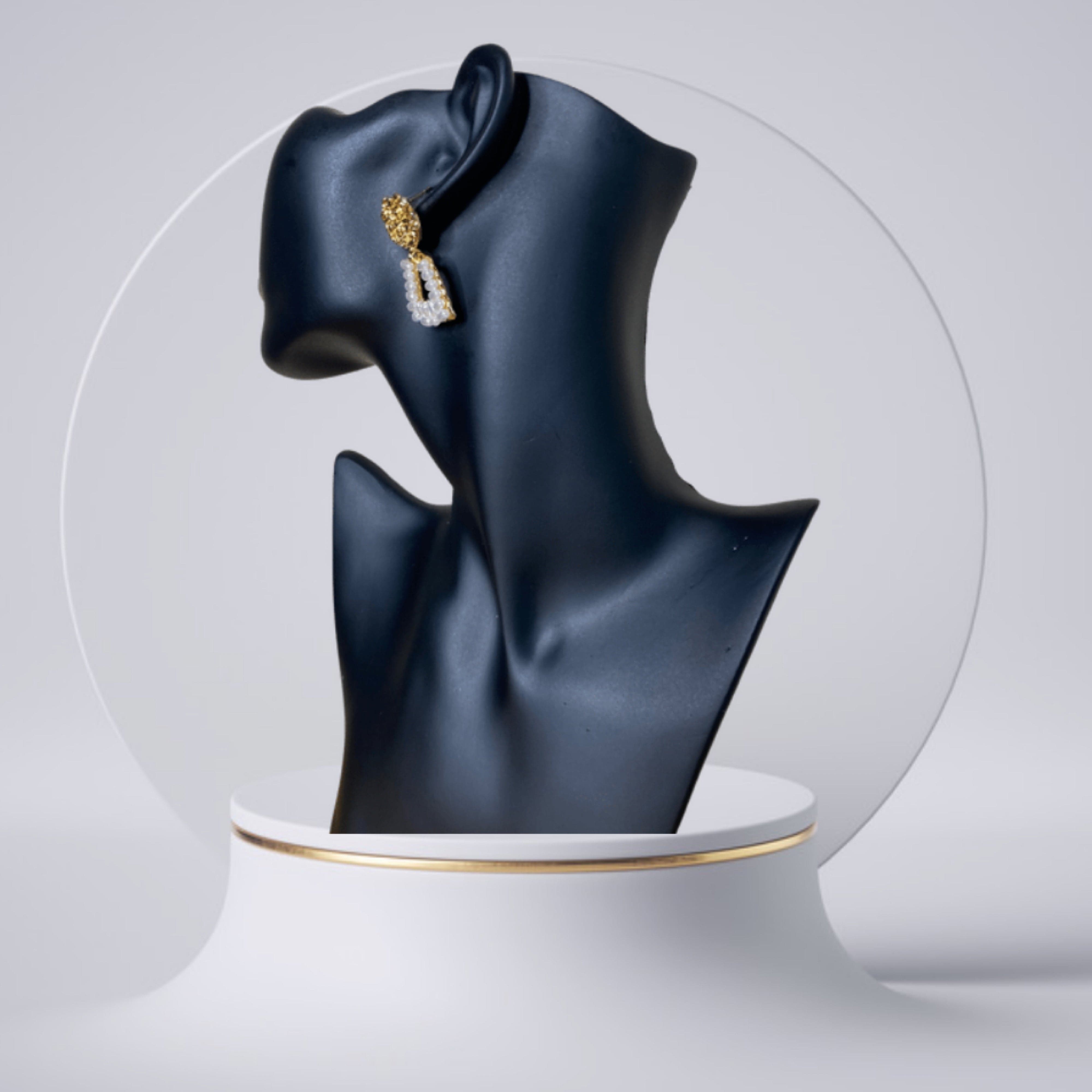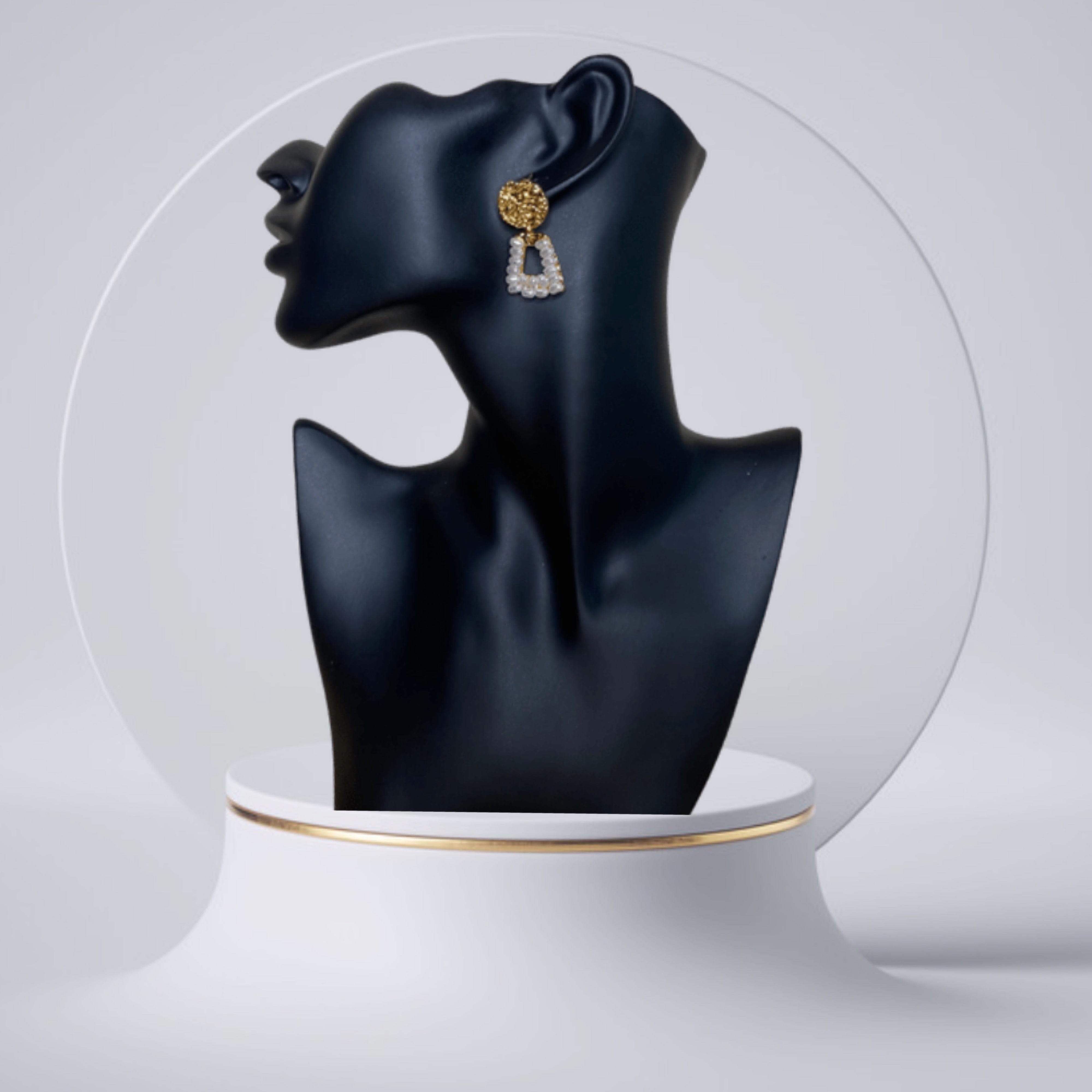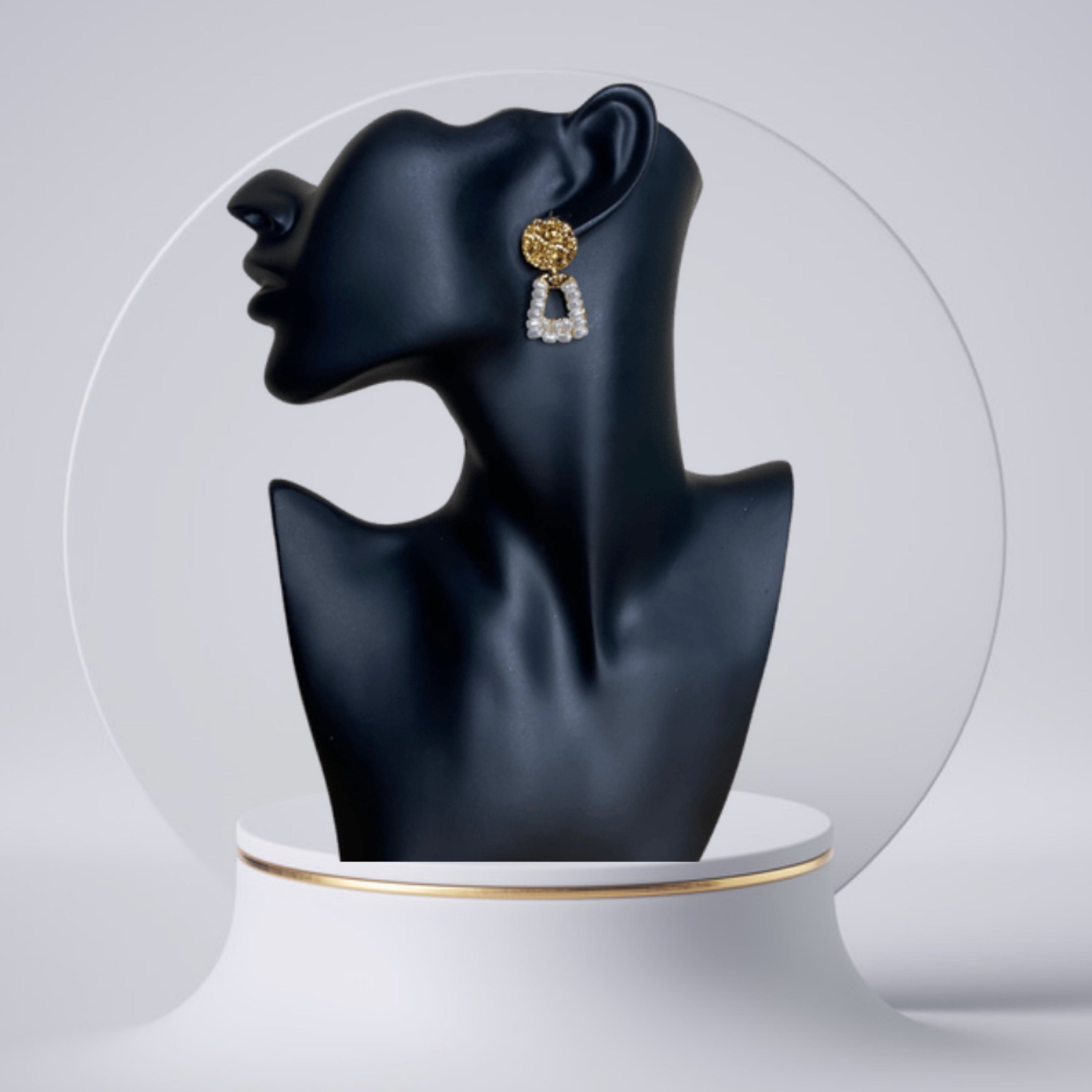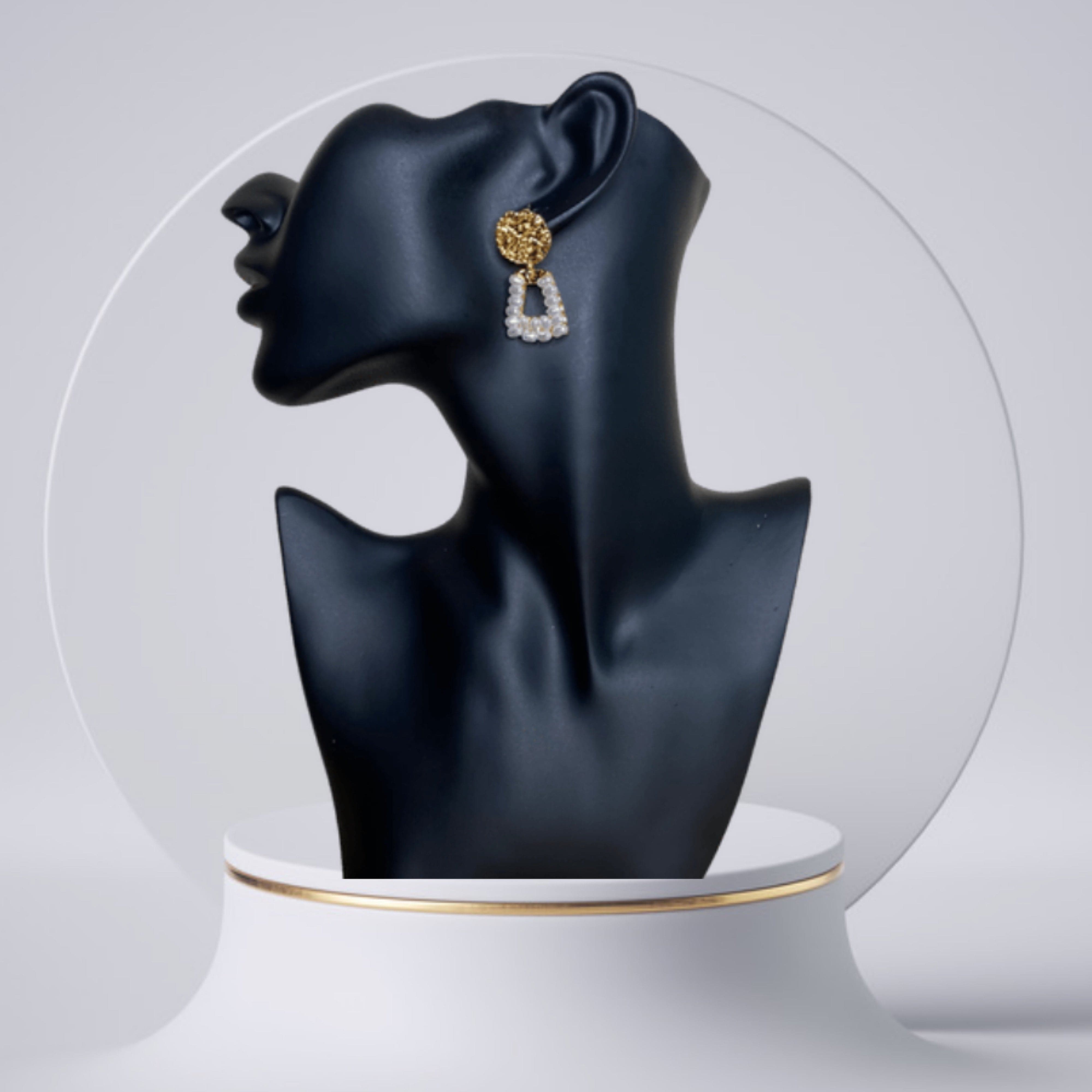 Hit refresh on your jewelry collection with these earrings. Featuring a gold textured detail on a faux white pearl detailing, a door knocker design, they're a new season must-have, what's not to love?