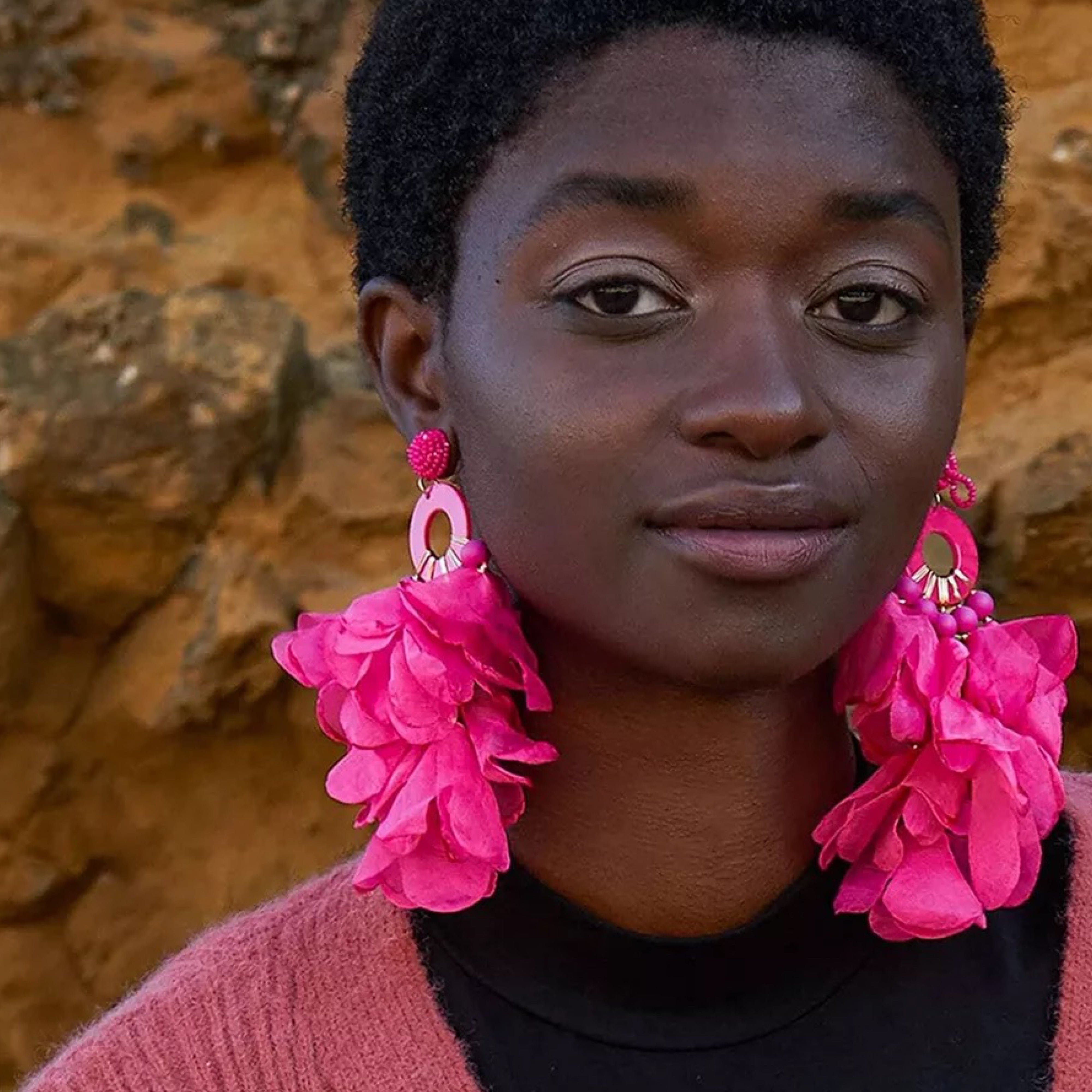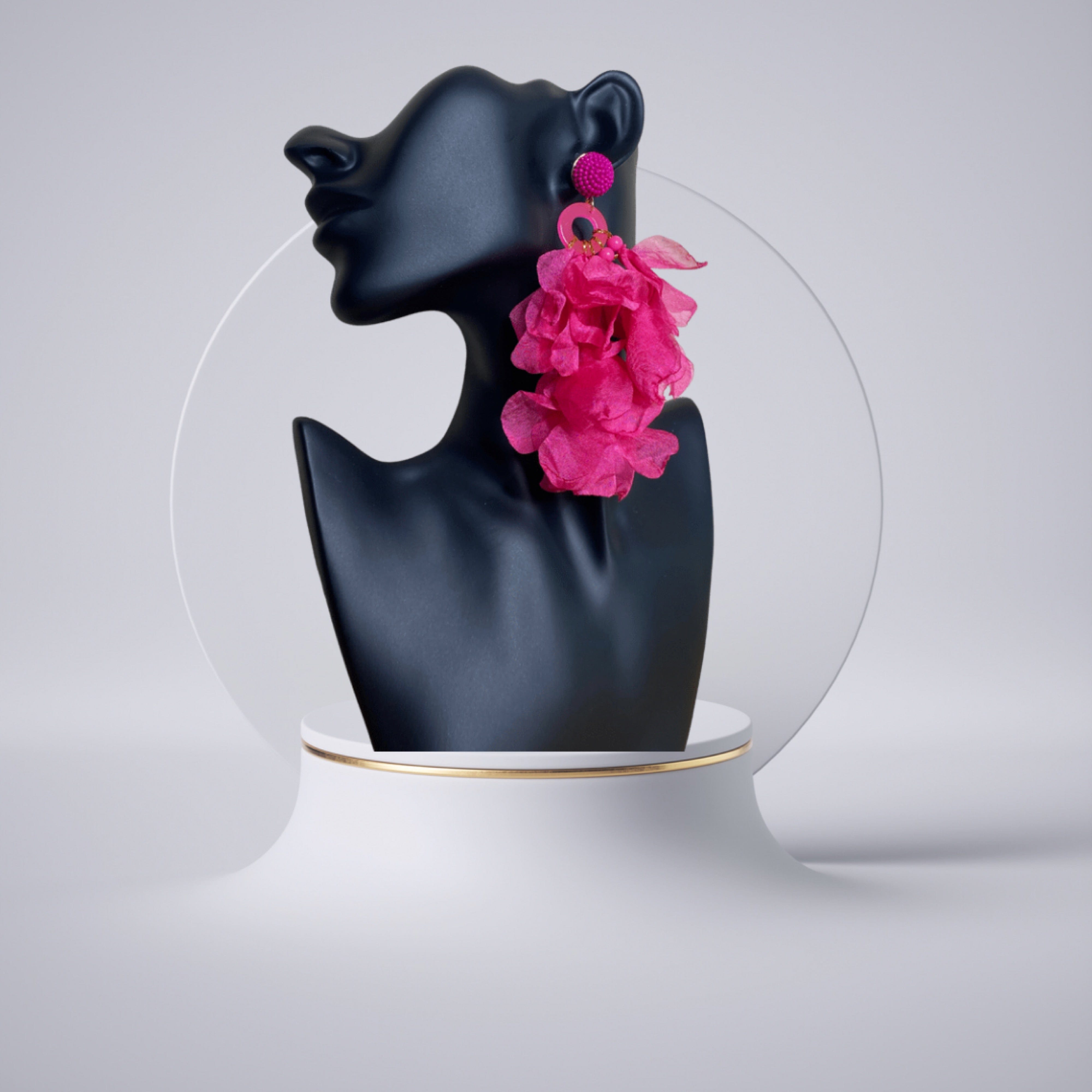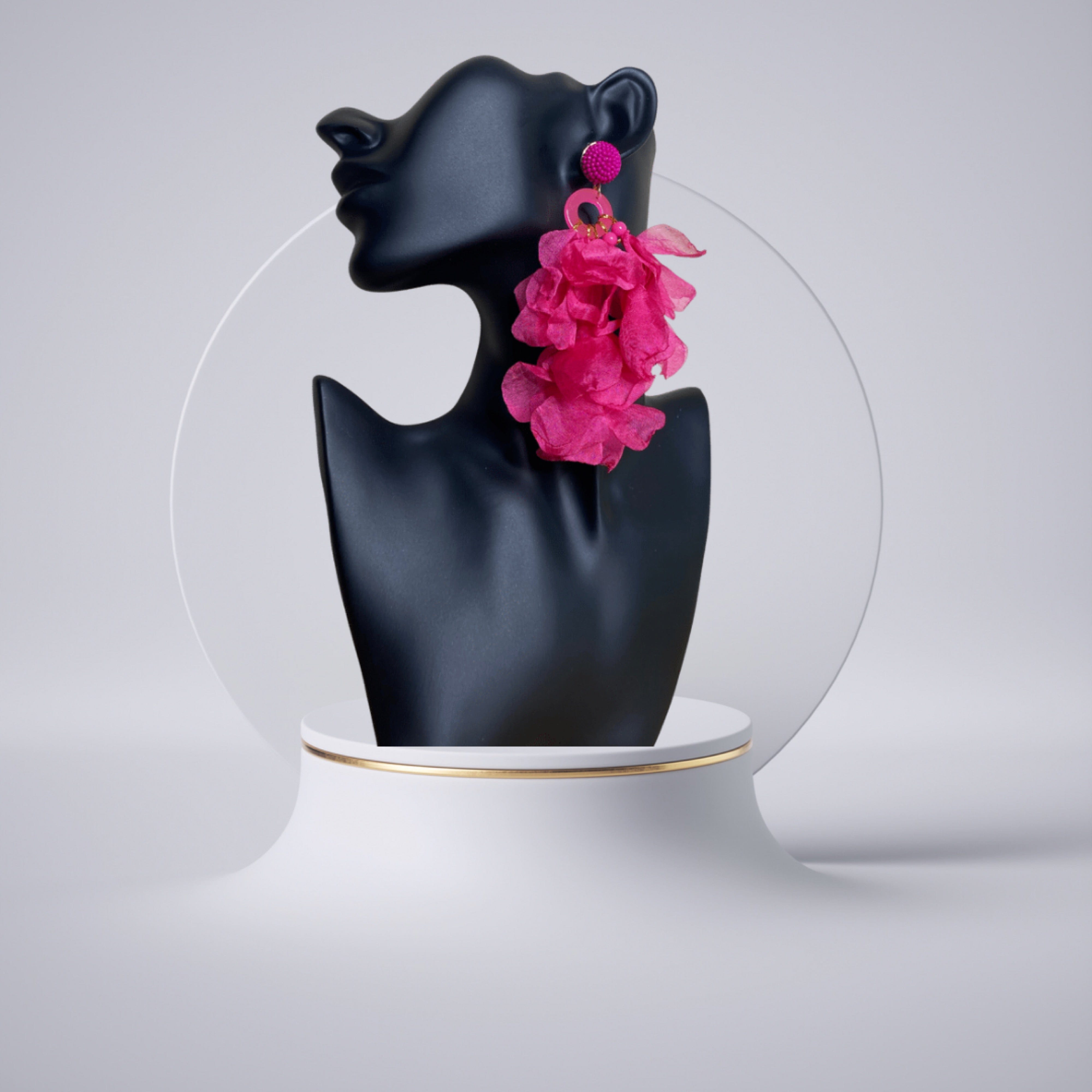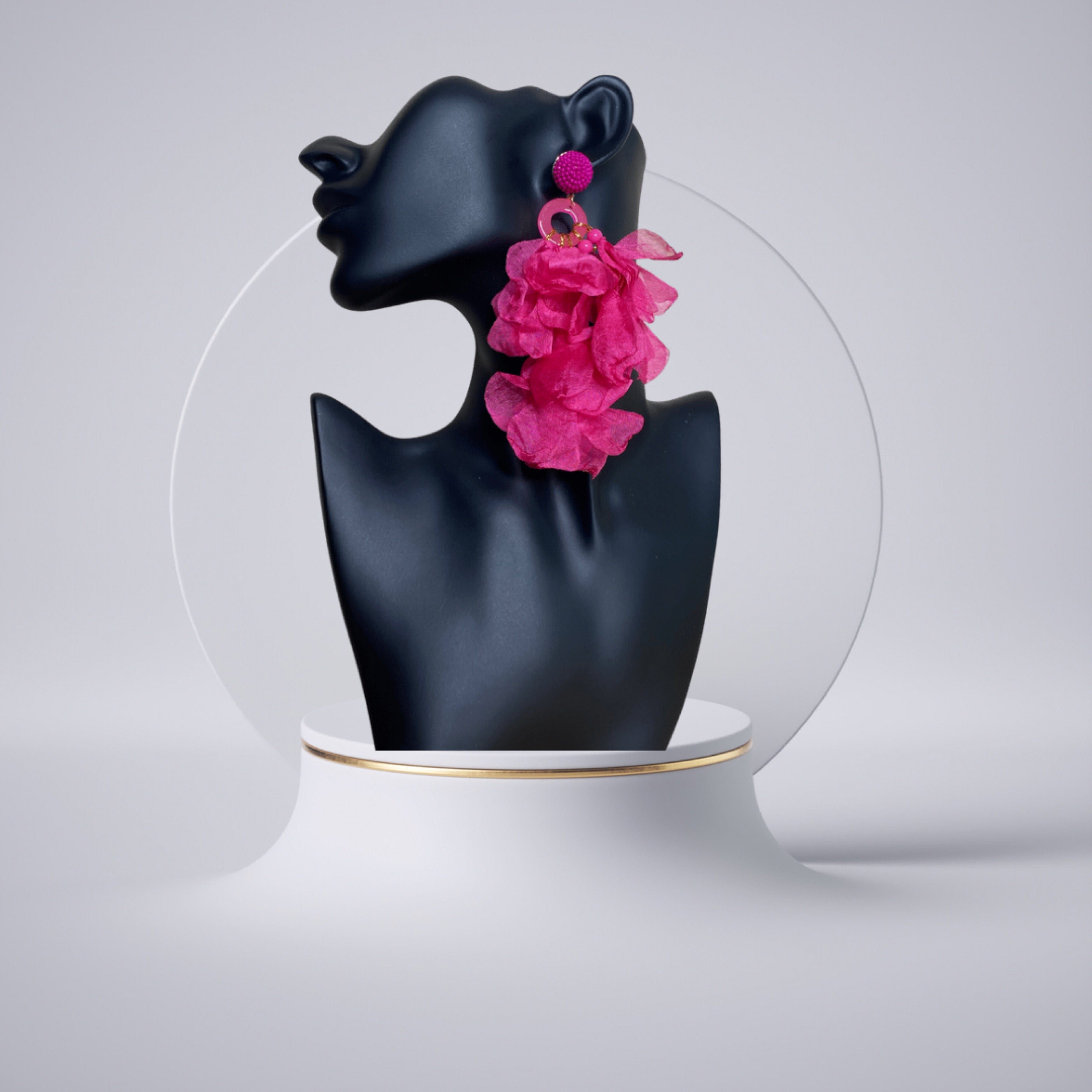 Level up your accessories collection with these earrings babe. Featuring a lace material with beads and fabric-shaped flower petals design. Wear these with your outfit of the day to complete any look.