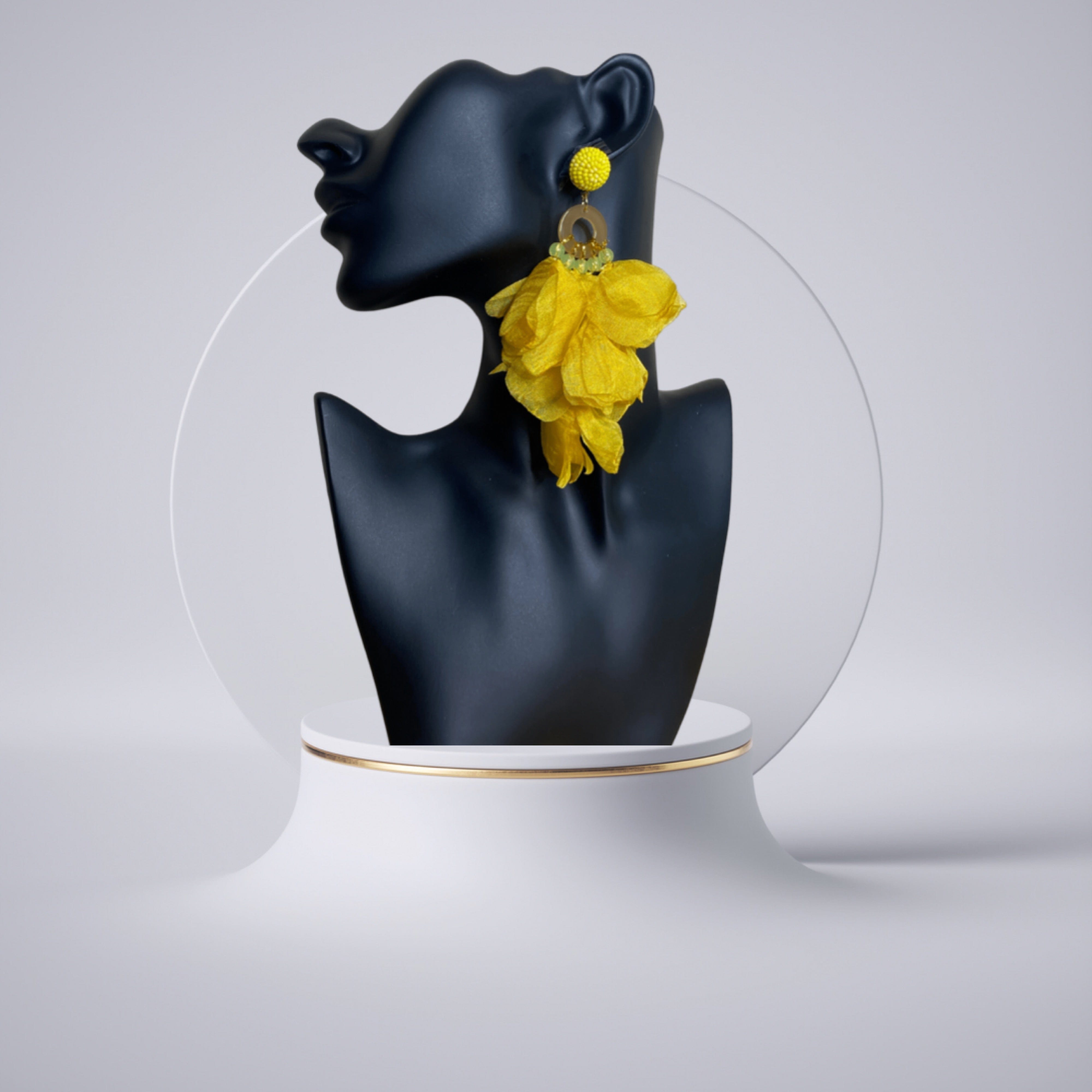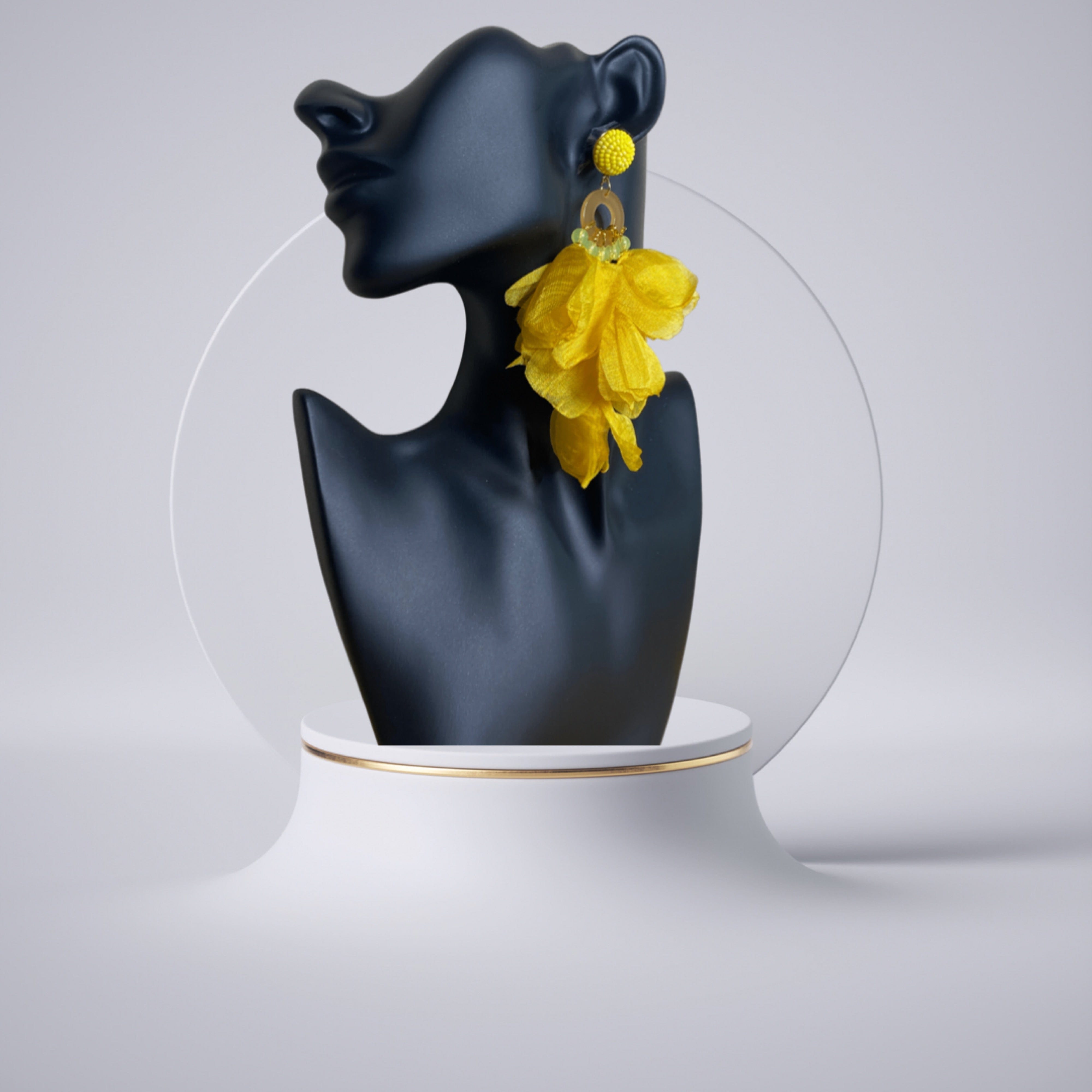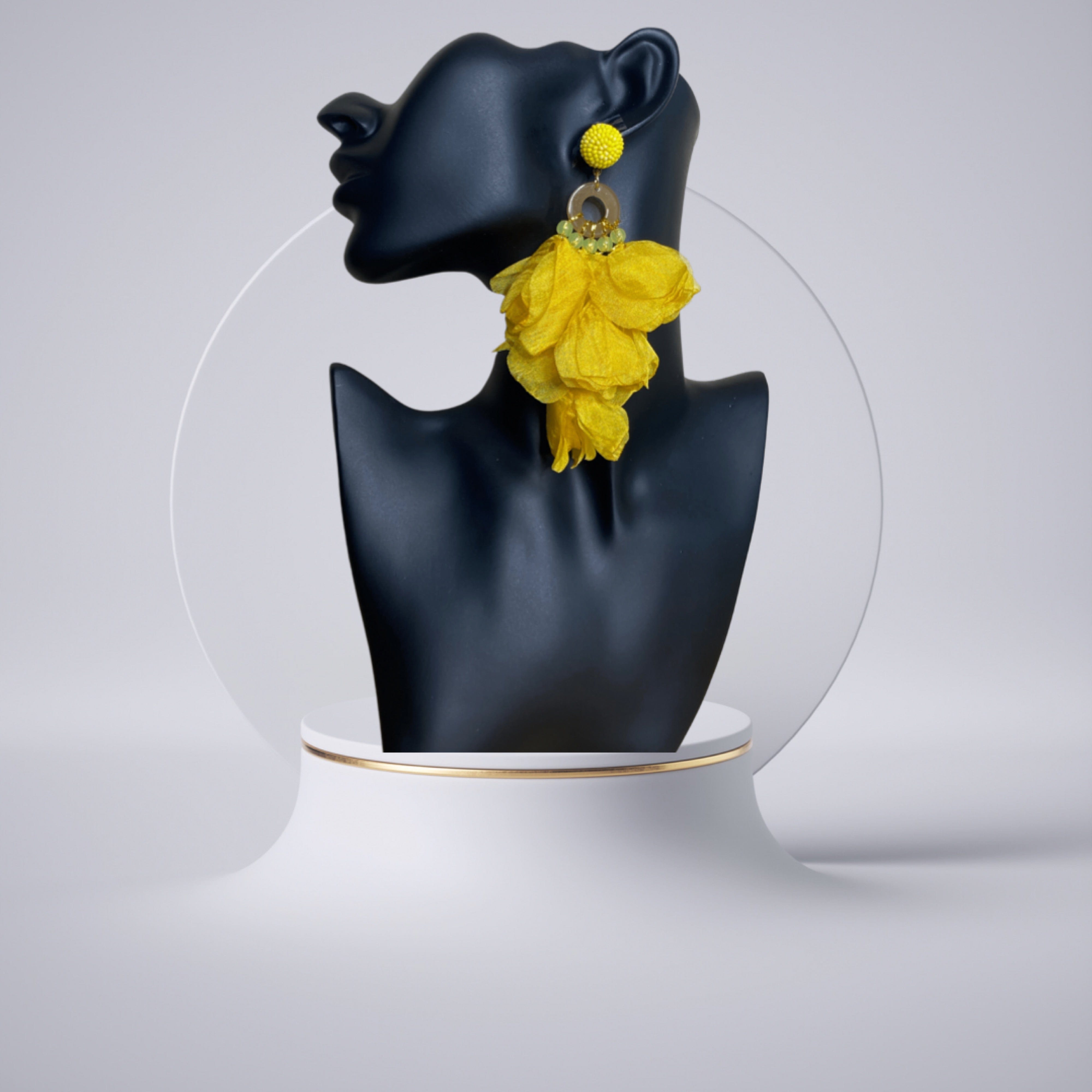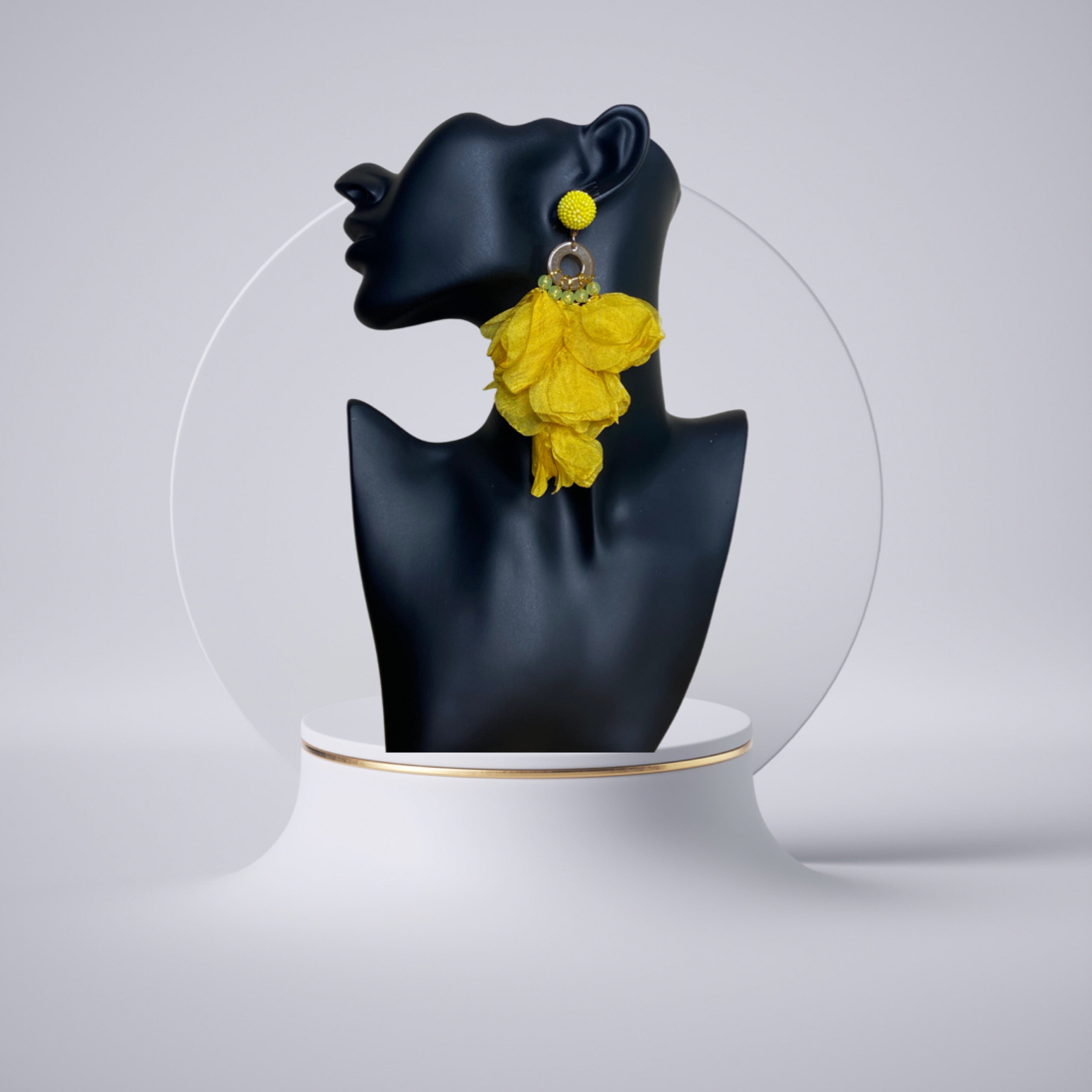 Level up your accessories collection with these earrings babe. Featuring a lace material with beads and fabric-shaped flower petals design. Wear these with your outfit of the day to complete any look.
