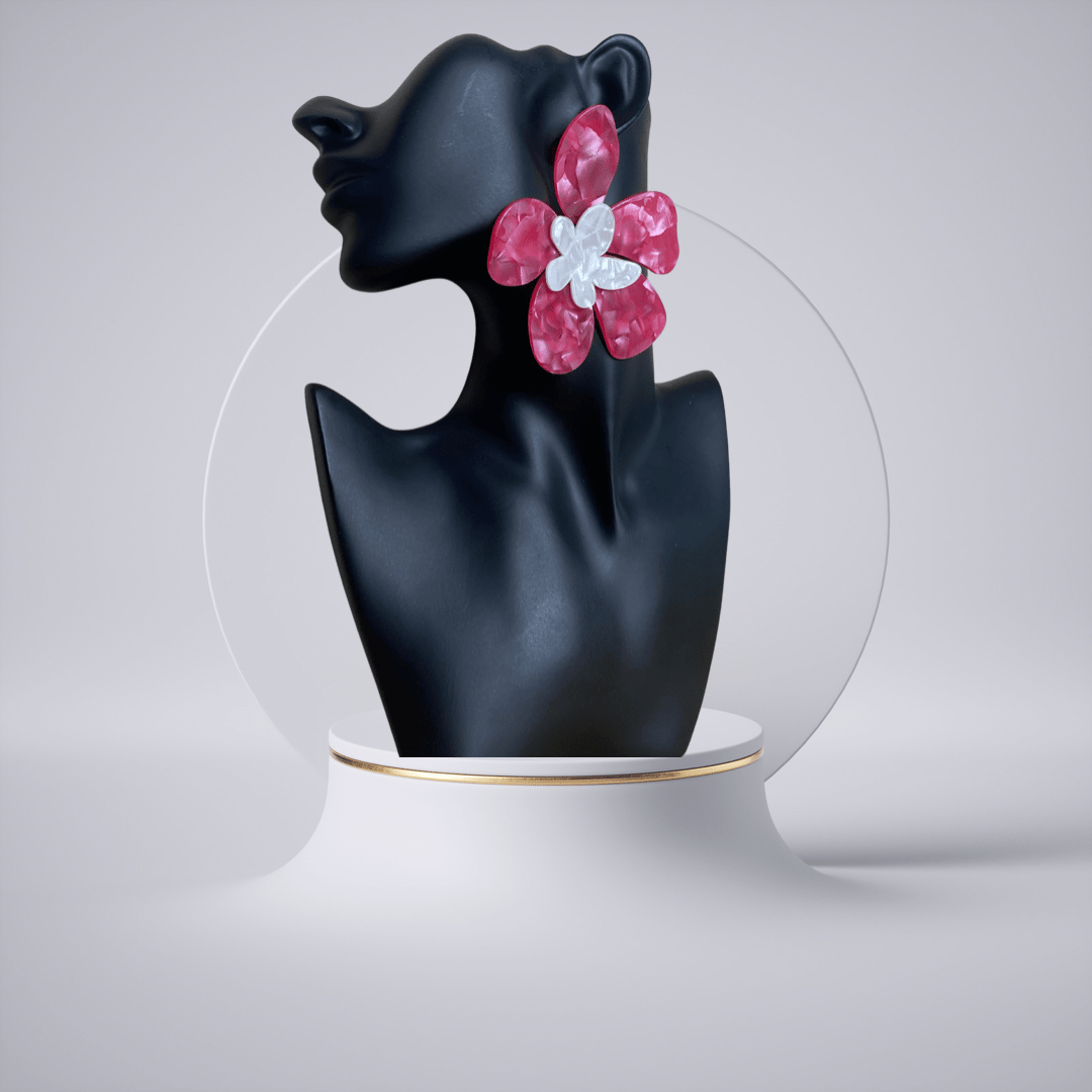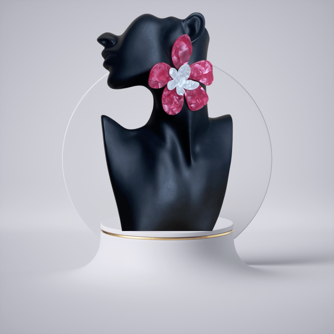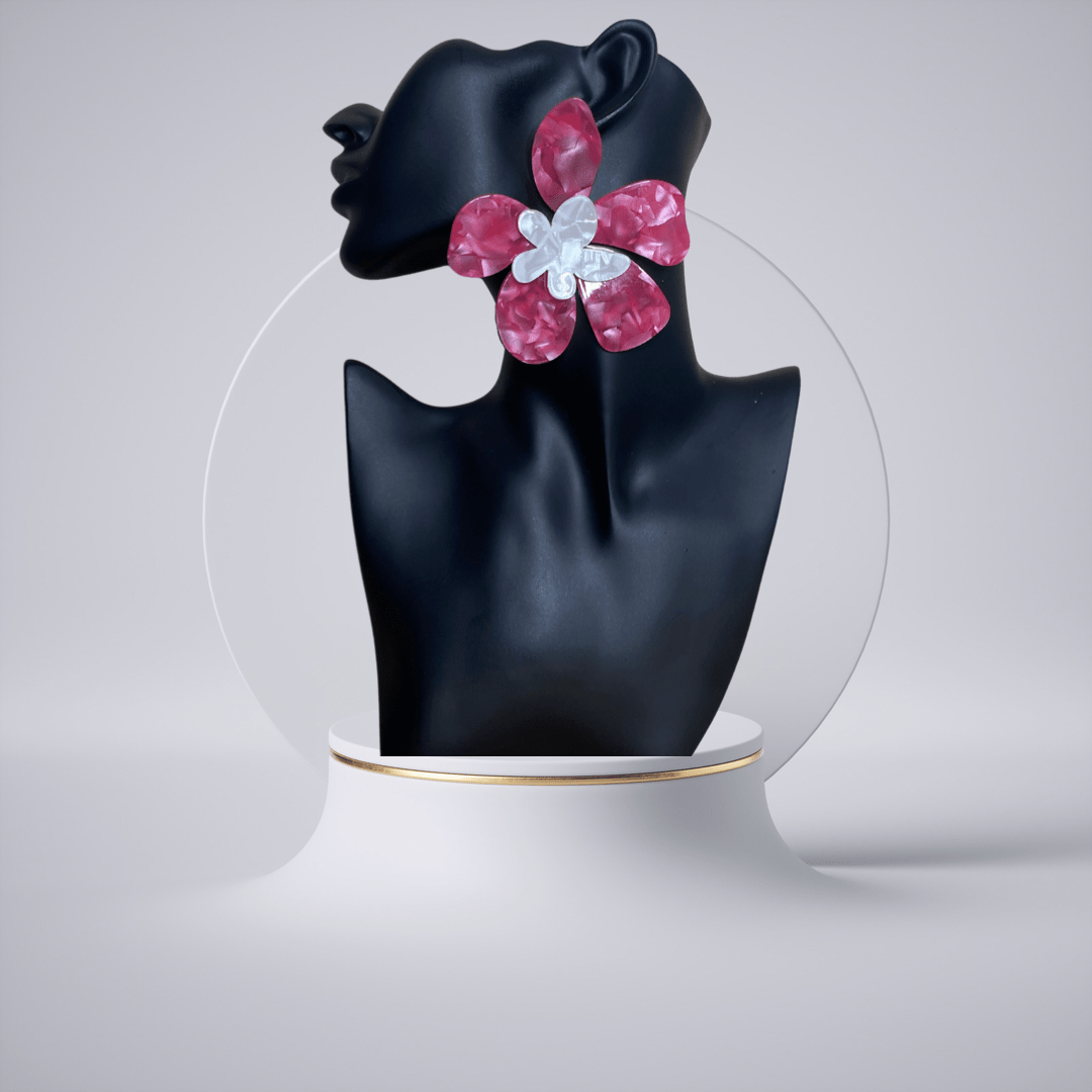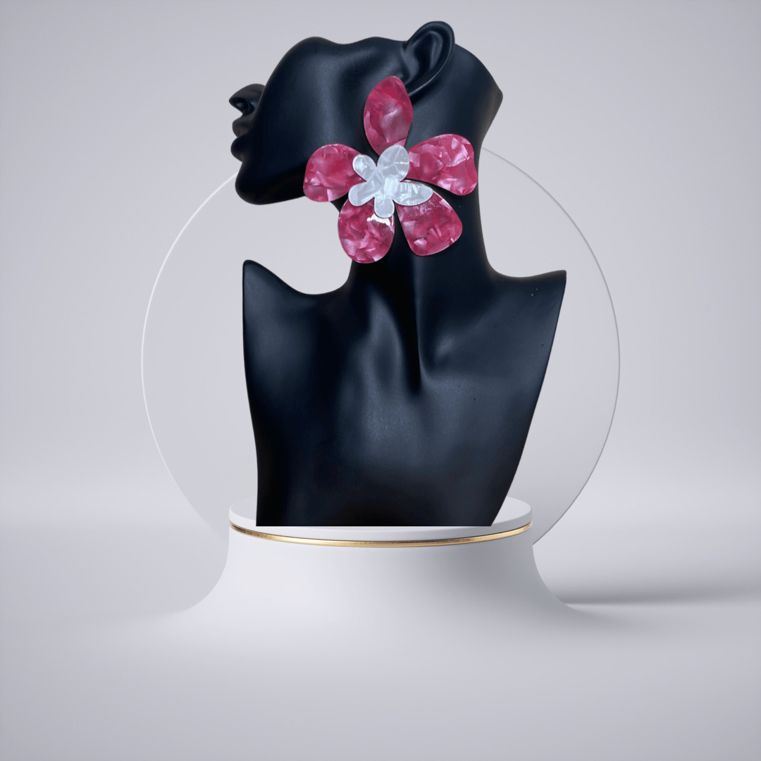 Add a little edge and a finishing touch to your outfits with these earrings babe. Featuring a pink and off-white acrylic textured material in a flower style, how could you resist?