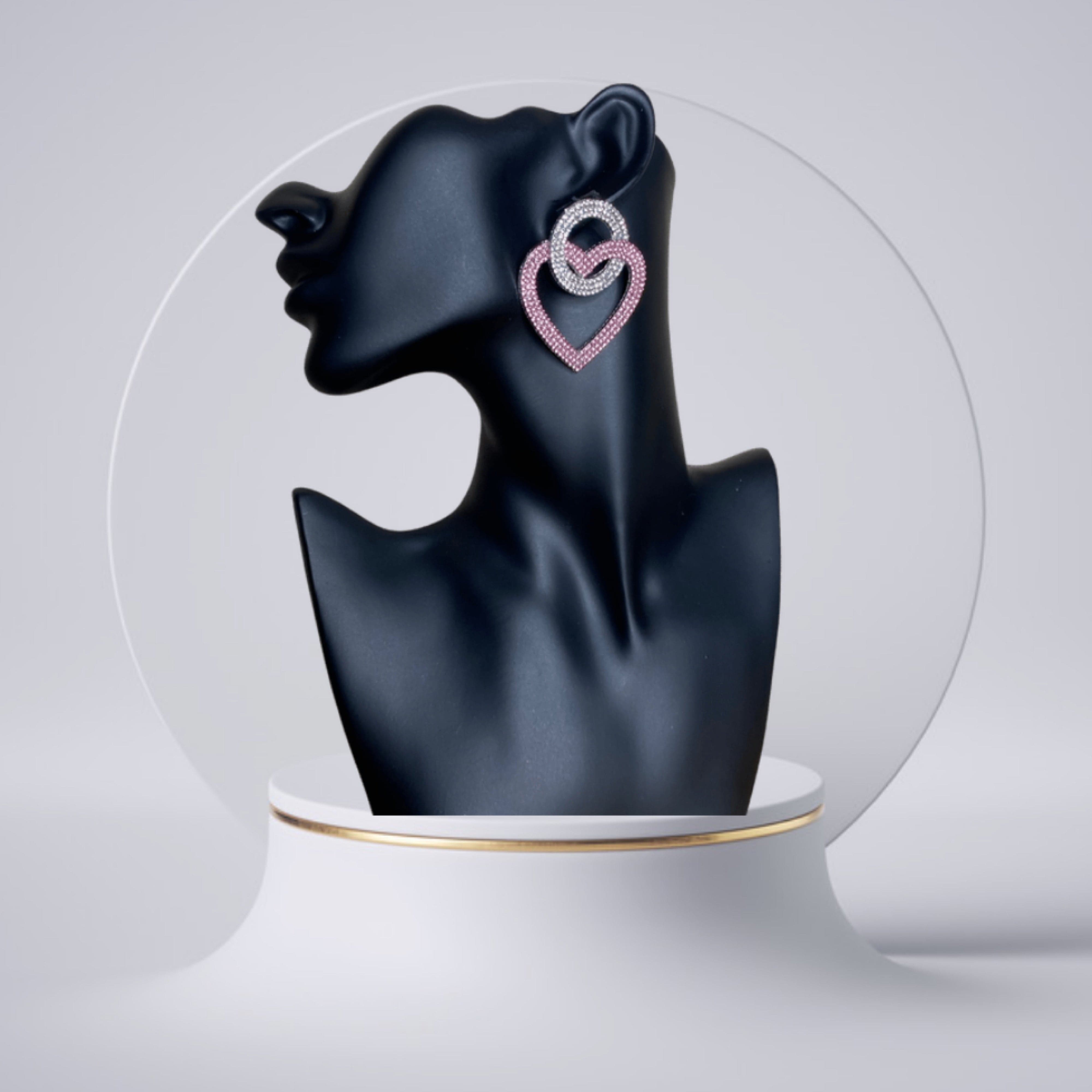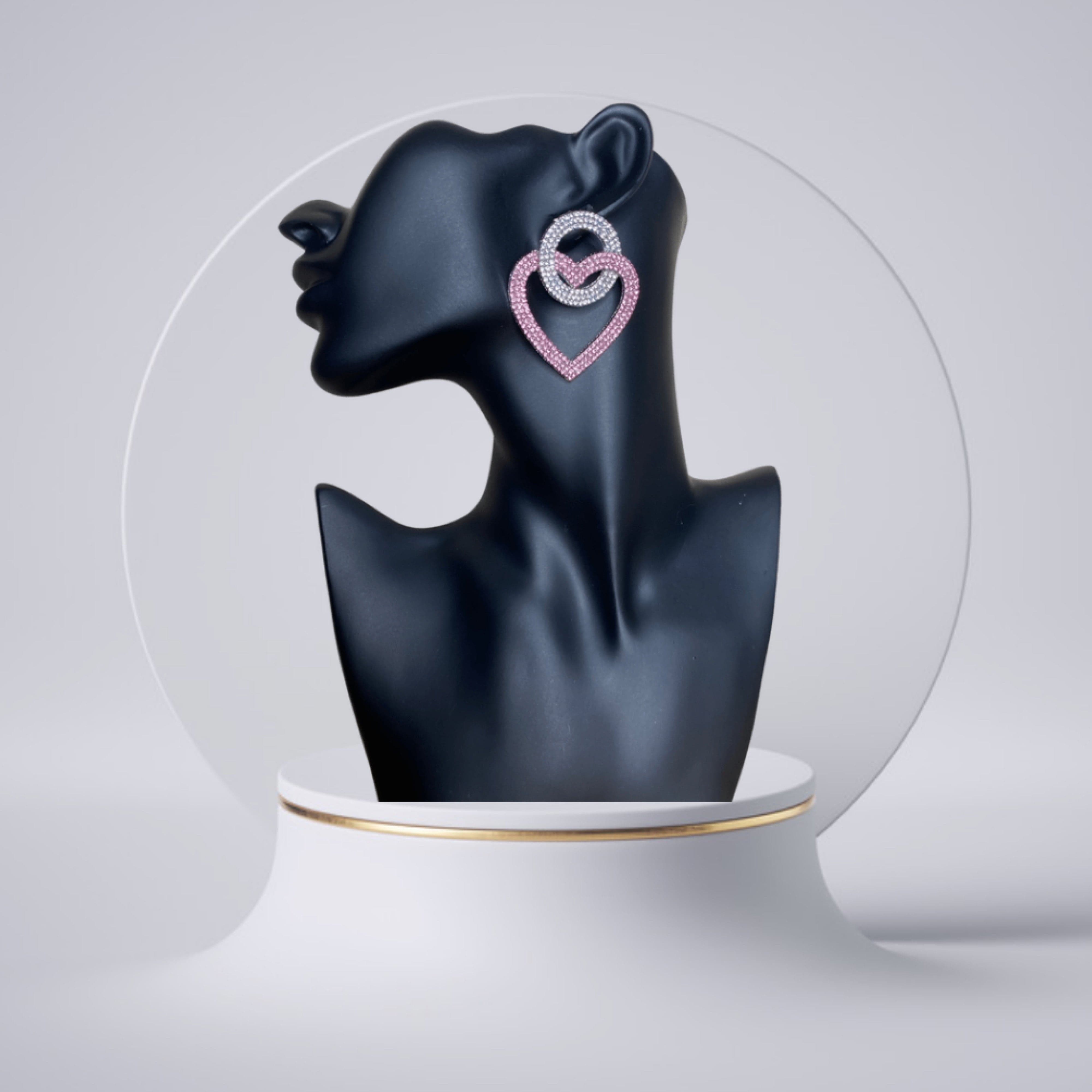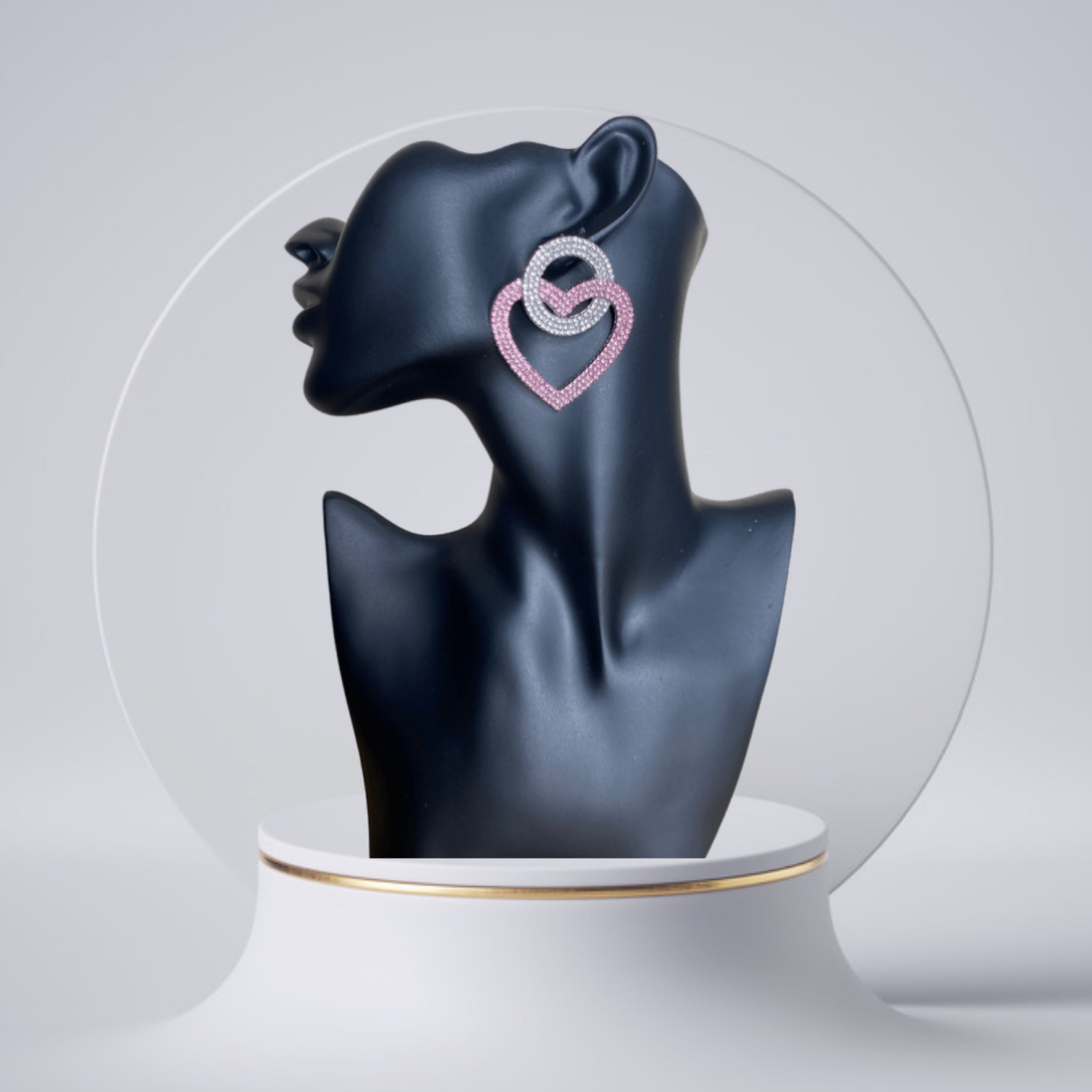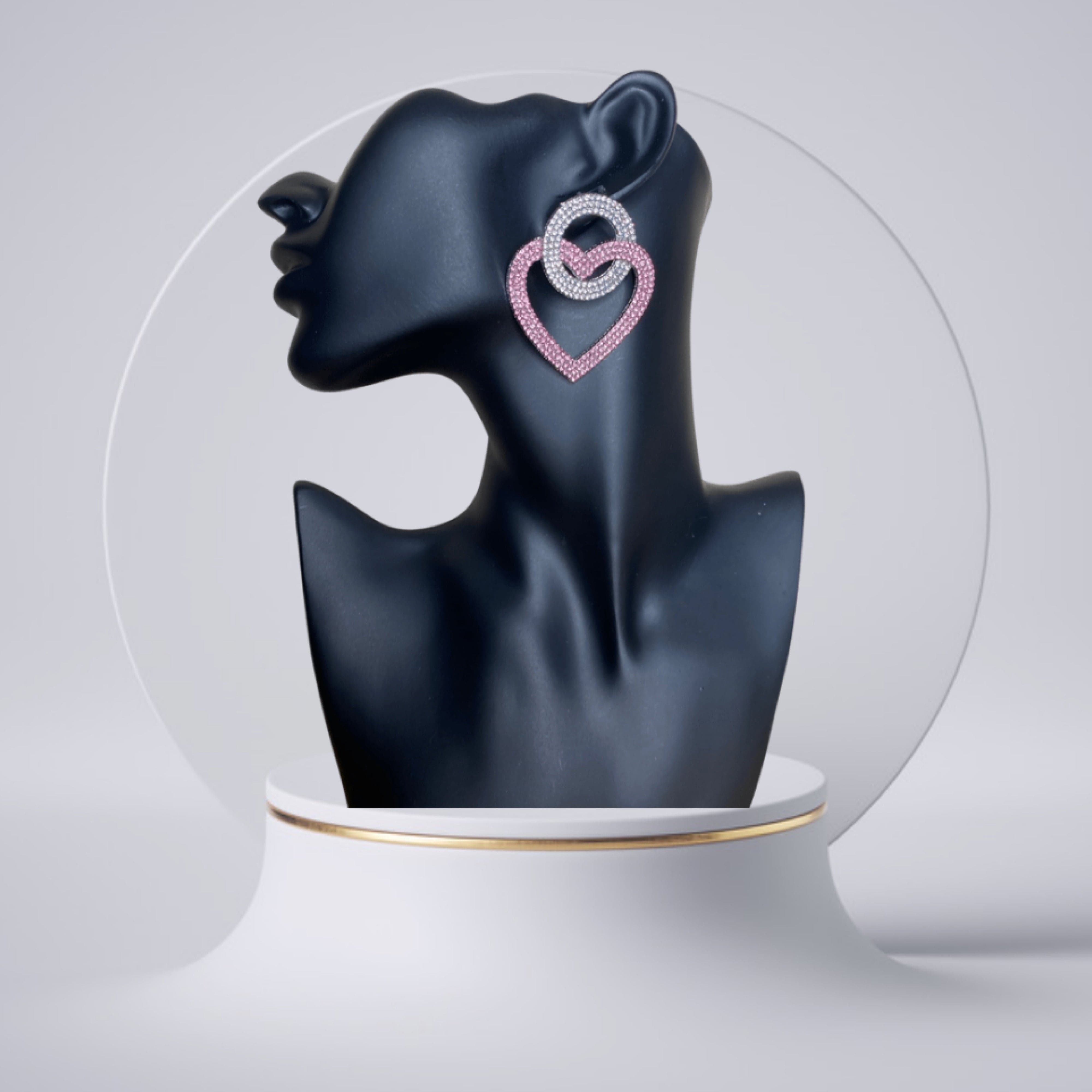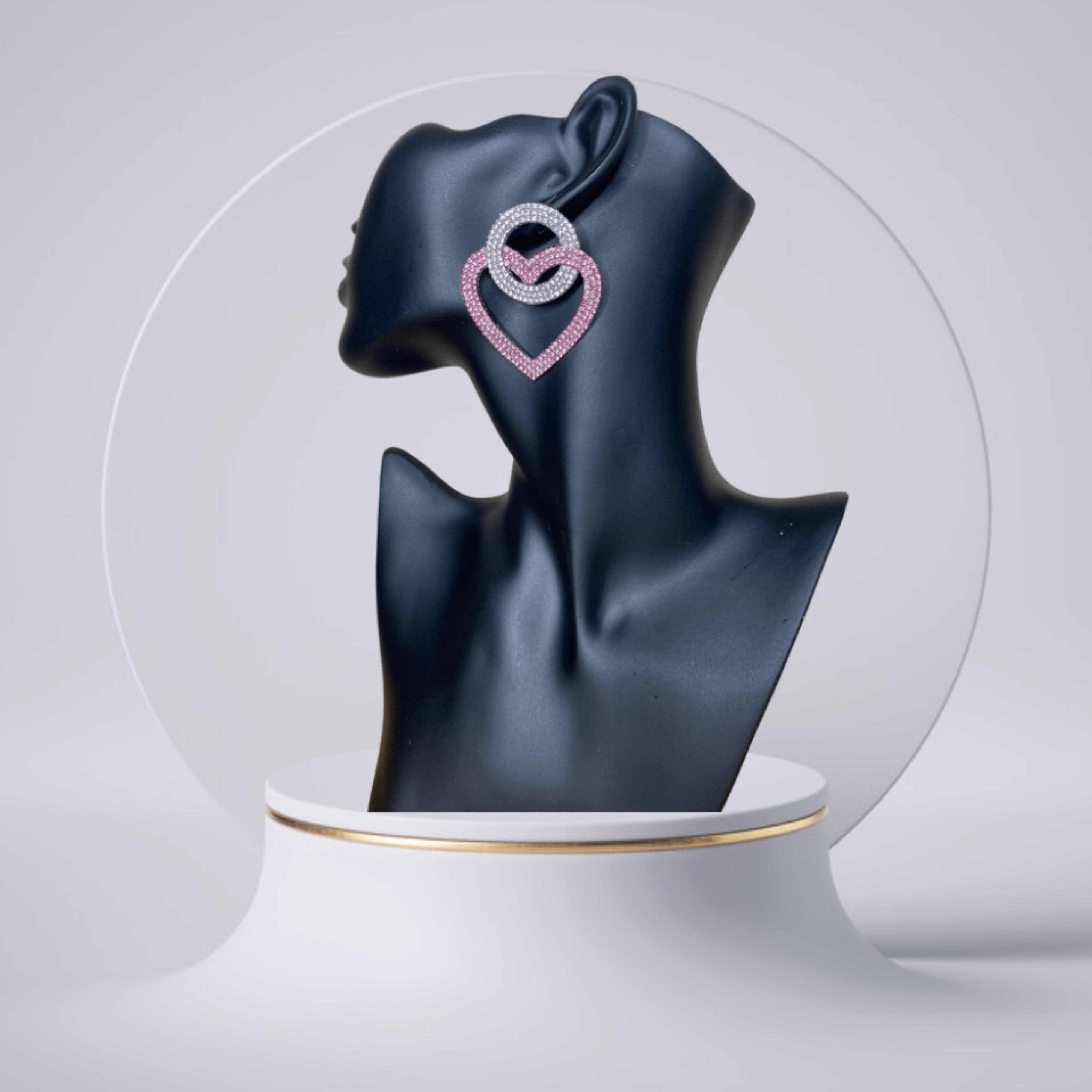 These earrings are at the top of our wishlist this season doll. Featuring a crystal heart-shaped earring, silver material with an abstract design, and colored diamante detailing, we are in love. Wear with your fave weekend outfits to make sure you get noticed.
