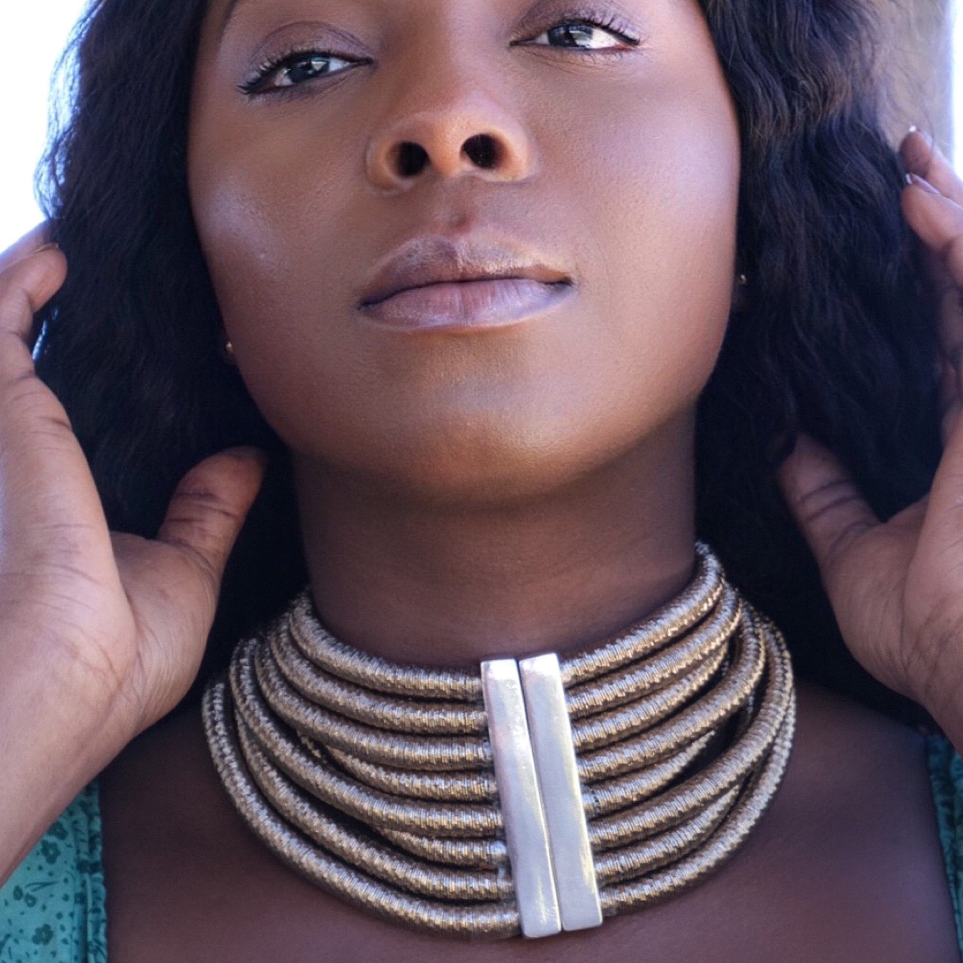 Motherland Tribal Eight Layer Rope Choker In Bronze