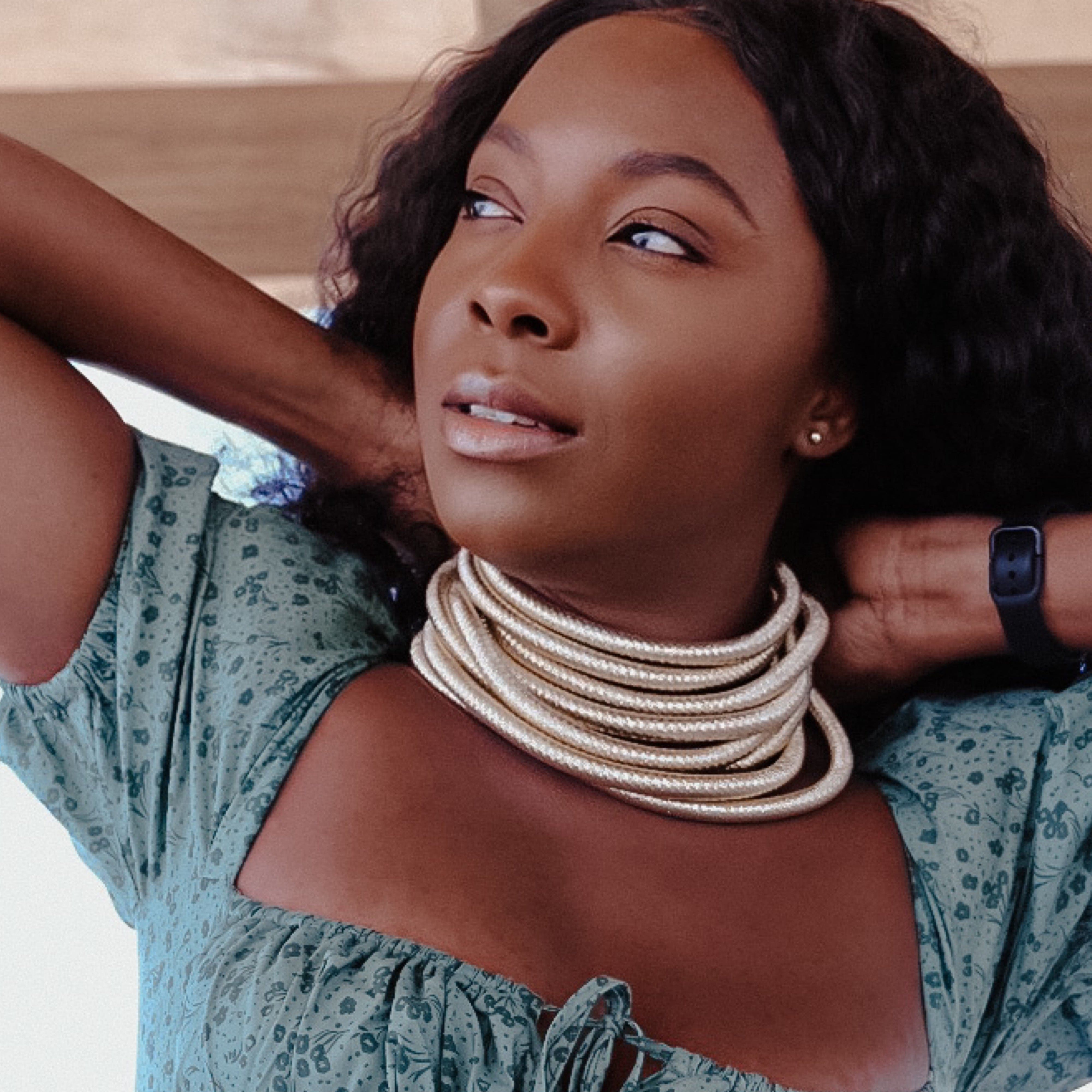 To ensure that your necklace lasts as long as possible, please handle it with care and refrain from wearing it in water or while exercising. It is best to store your jewelry in an air-tight container and away from humidity to reduce any tarnishing. Our chokers are made as a one-size-fits-all. Wear with care. The chokers should feel snug but never uncomfortable.