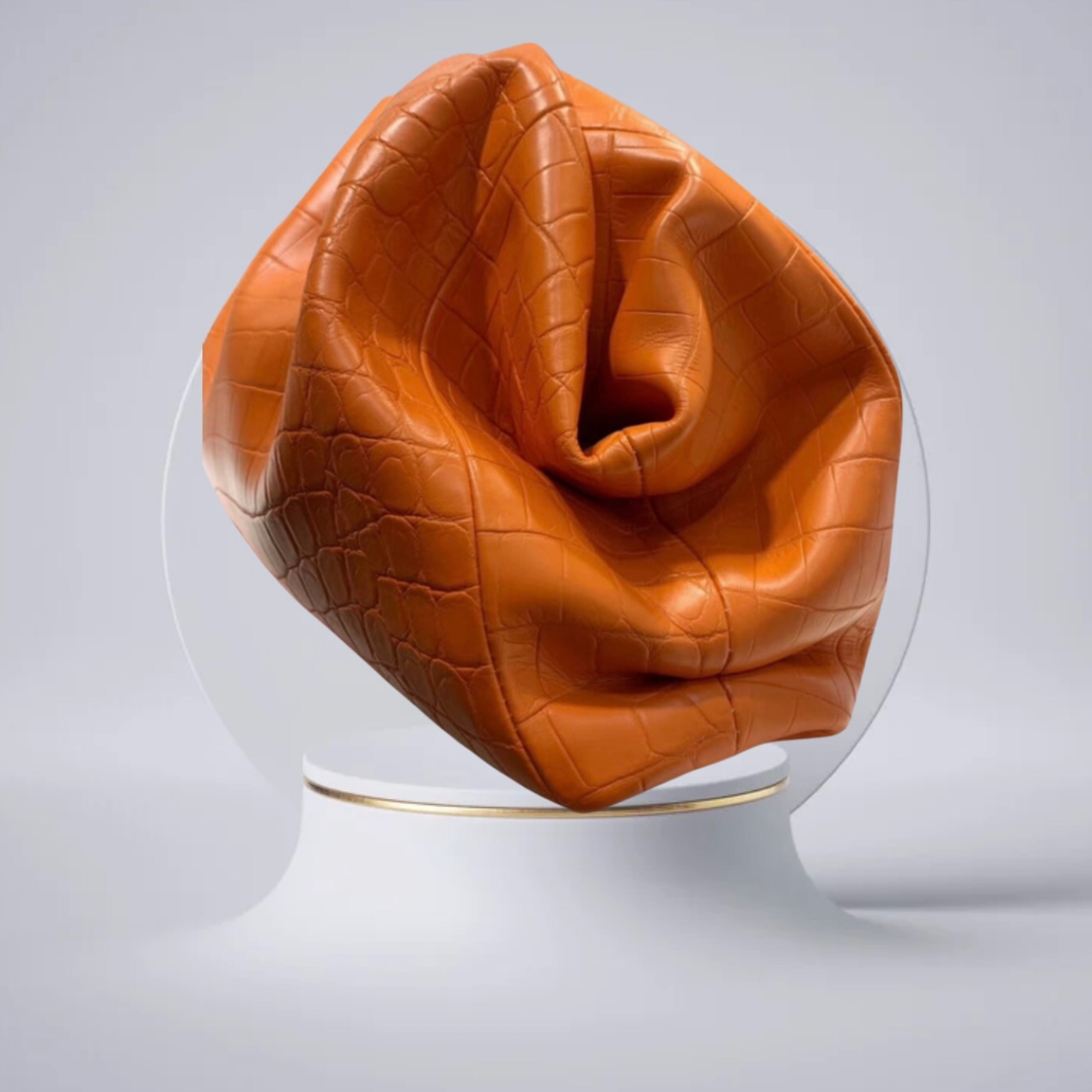 This bag is the perfect accessory for any occasion. Featuring an ORANGE SODA COLOR cowhide material with a croc print design, perfect for elevating any look.