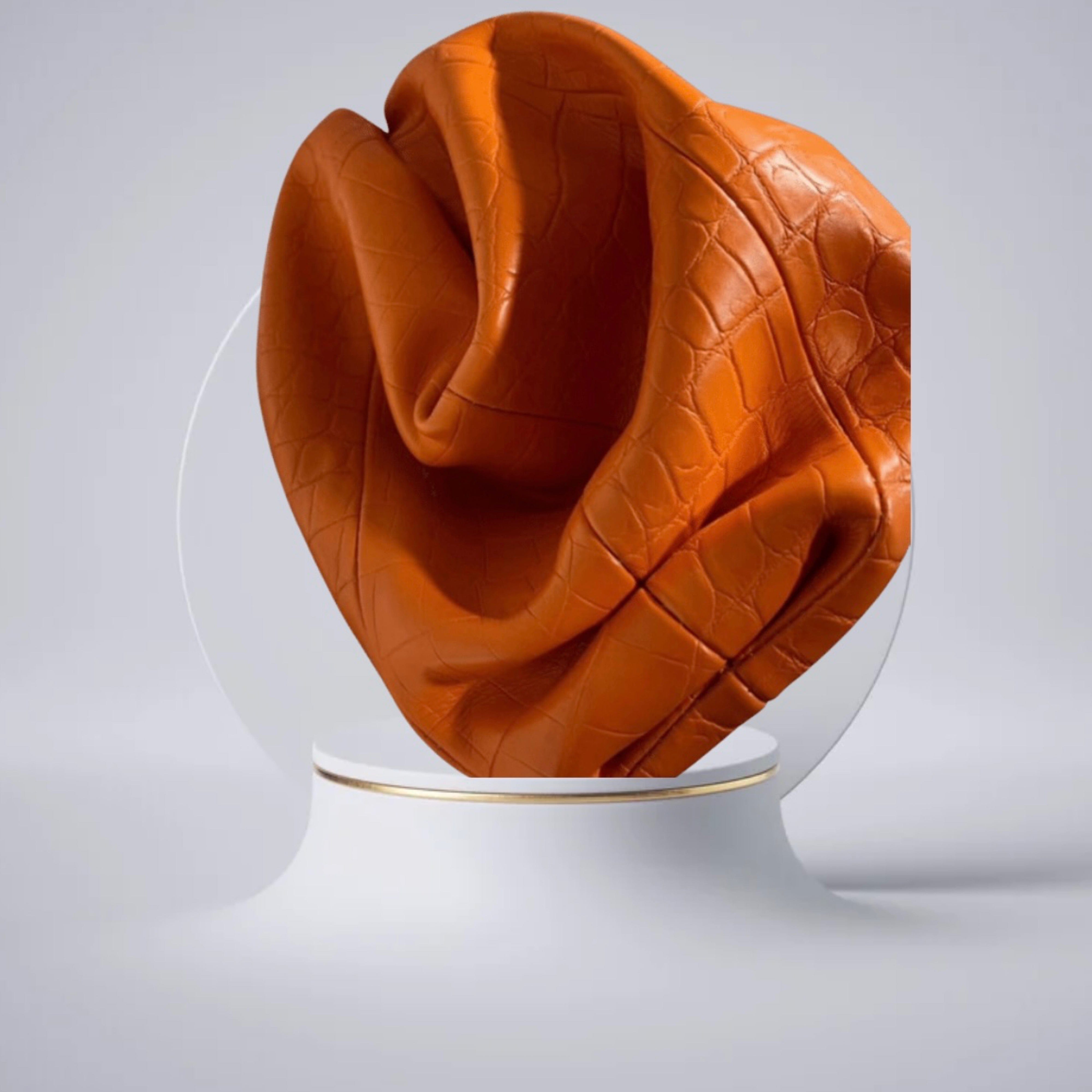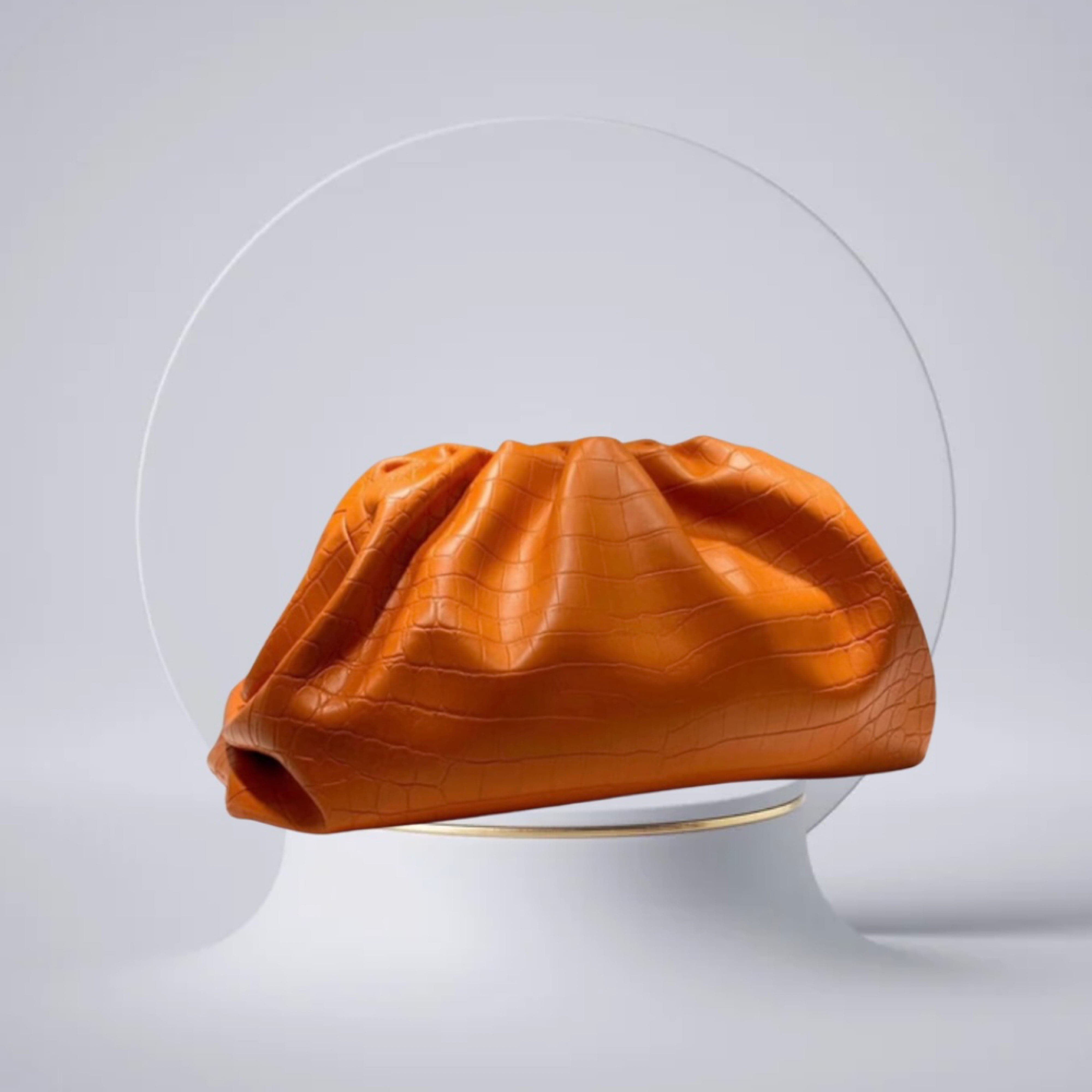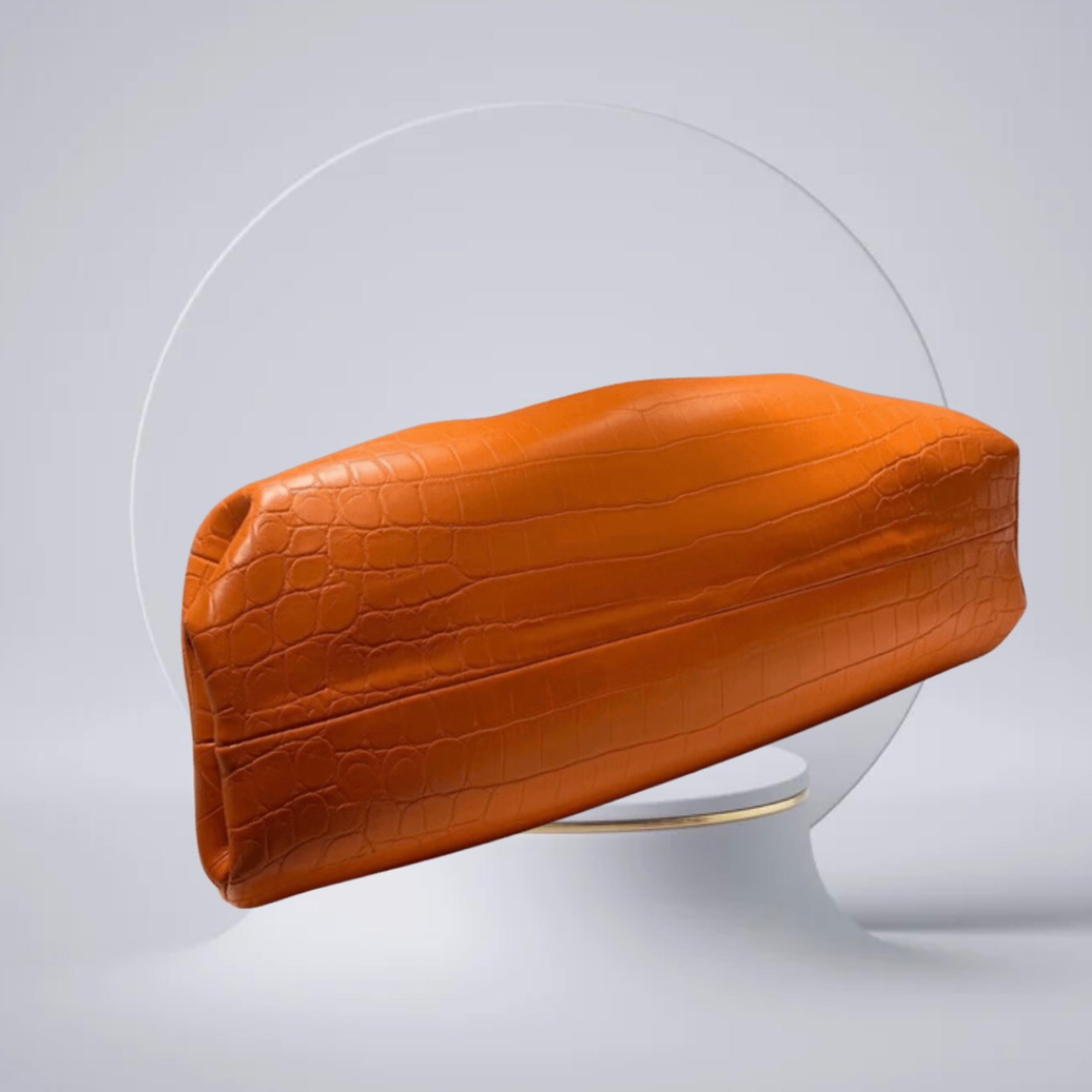 Orange Soda And Cowhide Cloud Pouch Bag.