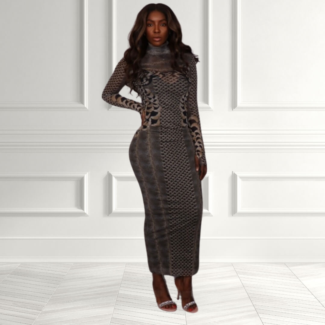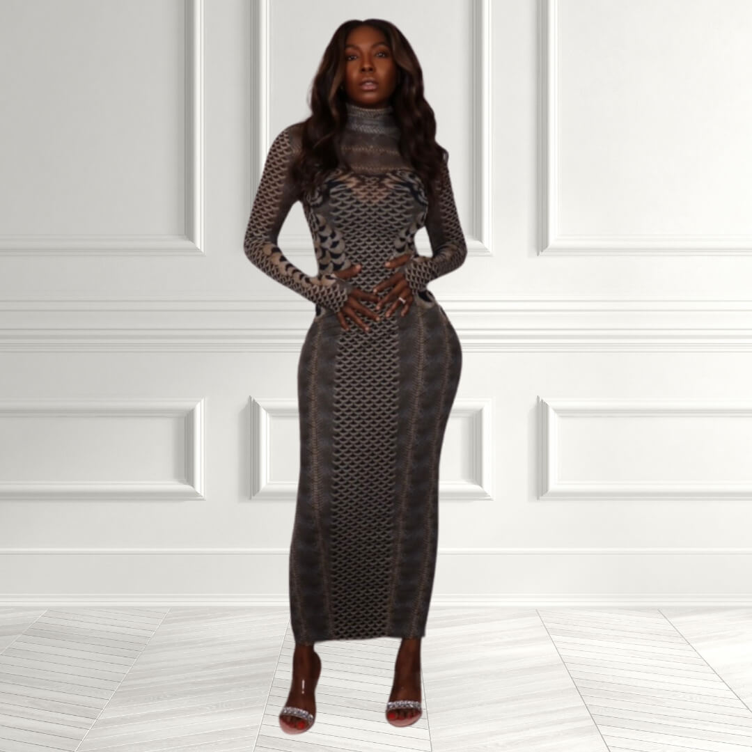 Mesmerizing Serpent Mesh Illusion Maxi Dress