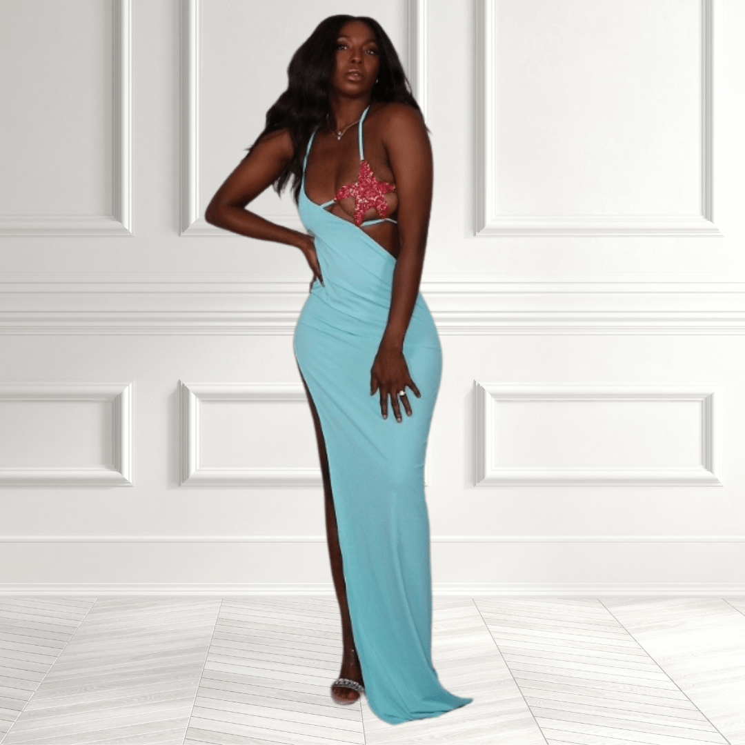 Prepare to dazzle and enchant with our Blue Self-Tie and Starfish Details Maxi Dress. It's not just a dress; it's a symbol of captivating elegance and individuality. Whether you're attending a beach-themed event, a summer soirée, or simply want to stand out on a special day, this dress is the perfect choice. Be the center of attention, embrace the radiance of blue, and make a unique statement with starfish details. Shop now and embark on a journey to unforgettable fashion and timeless charm.