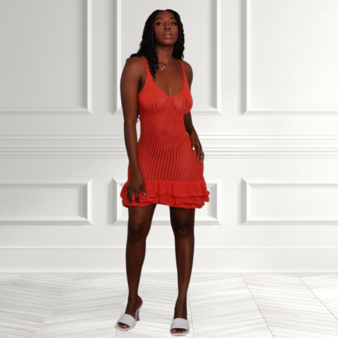 Make a statement with our Orange Crochet Knit Mini Dress. Crafted with a vibrant crochet knit and playful ruffle hem, it's a must-have for the new season. Don't miss the chance to own a dress that will redefine your style and set you apart from the crowd. Whether you're attending a beachside brunch, a garden party, or simply seizing the day, our Orange Crochet Knit Mini Dress is your go-to choice. Order now and get ready to shine.
