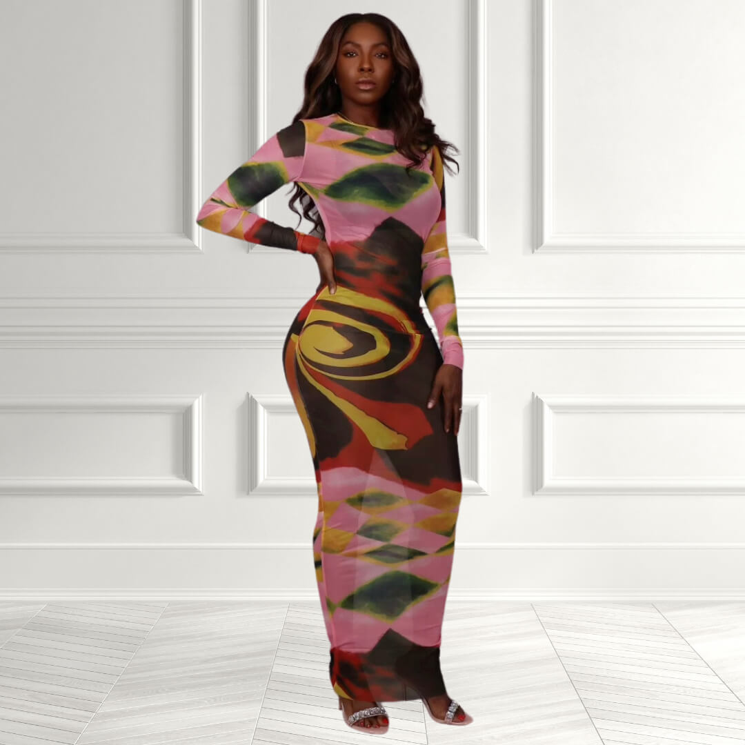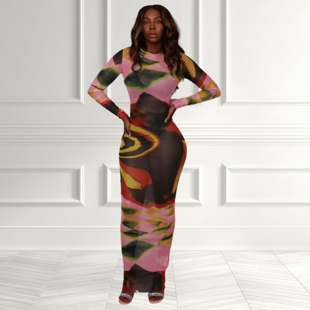 Abstract Allure Sheath Maxi Dress