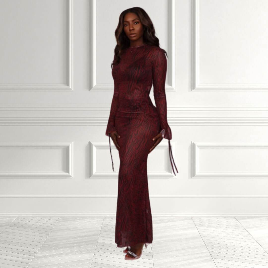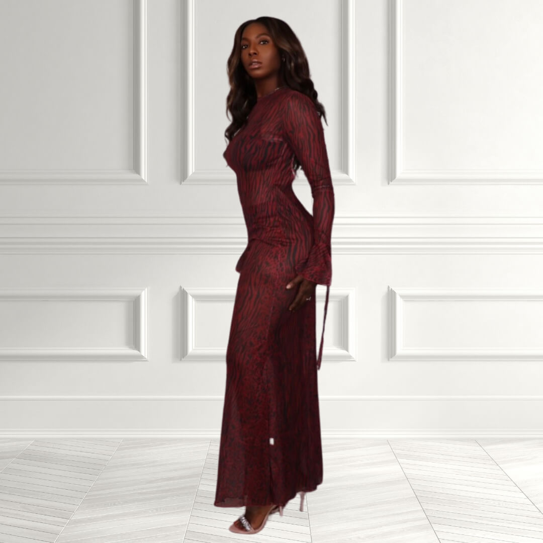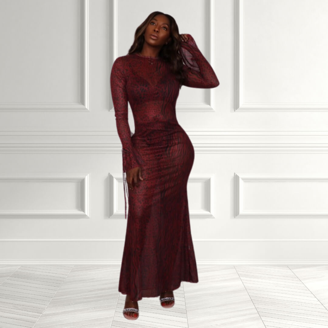 Transform every entrance into a grand spectacle with the Ruby Rapture Long Sleeve Dress, only at ForeignGeh.com. Radiating elegance, this long-sleeved, red leopard print dress is a marvel of fashion engineering, designed for the bold and the beautiful. Embrace the art of allure; the Ruby Rapture Long Sleeve Dress is sculpted to perfection, accentuating every curve with its body-hugging silhouette and full-length splendor.