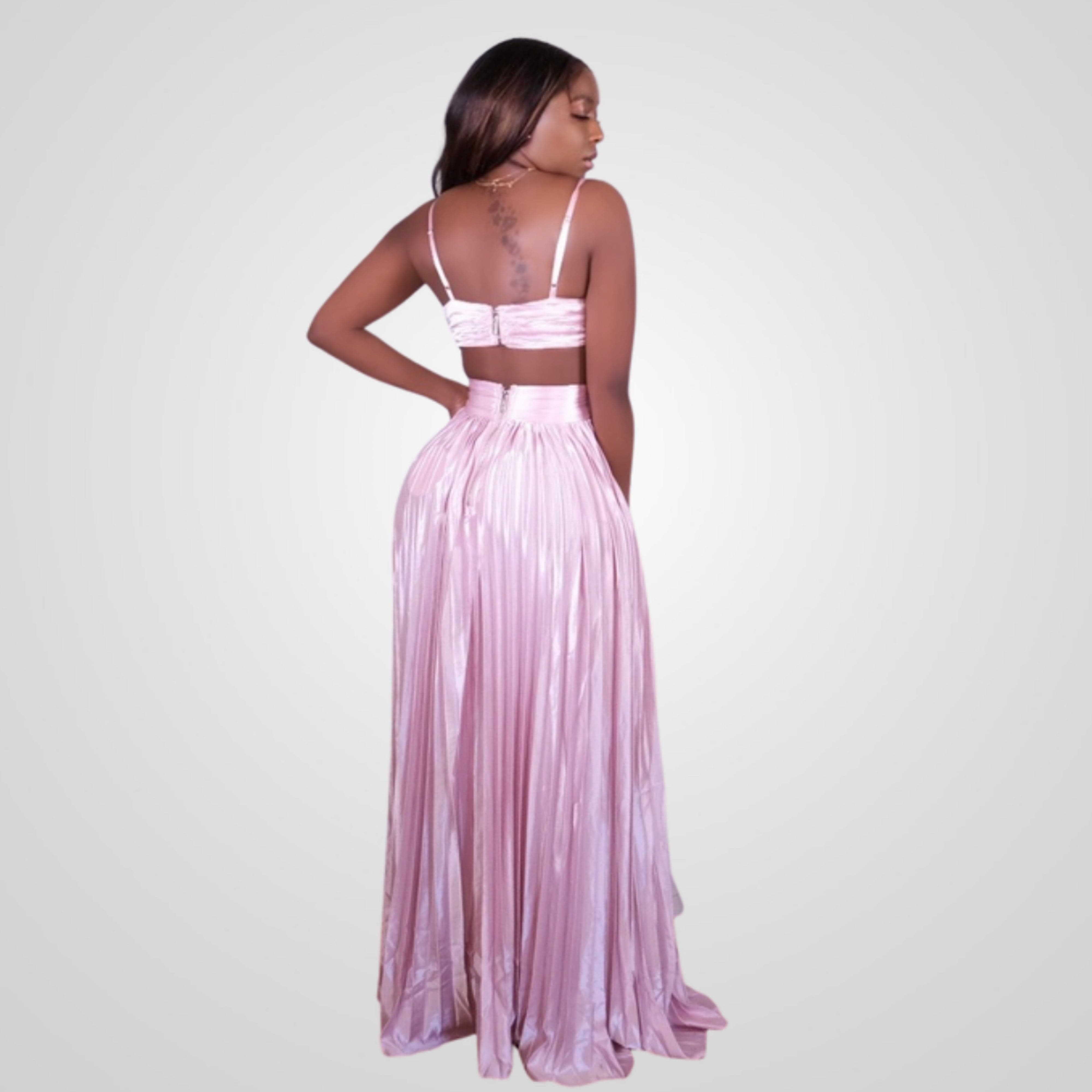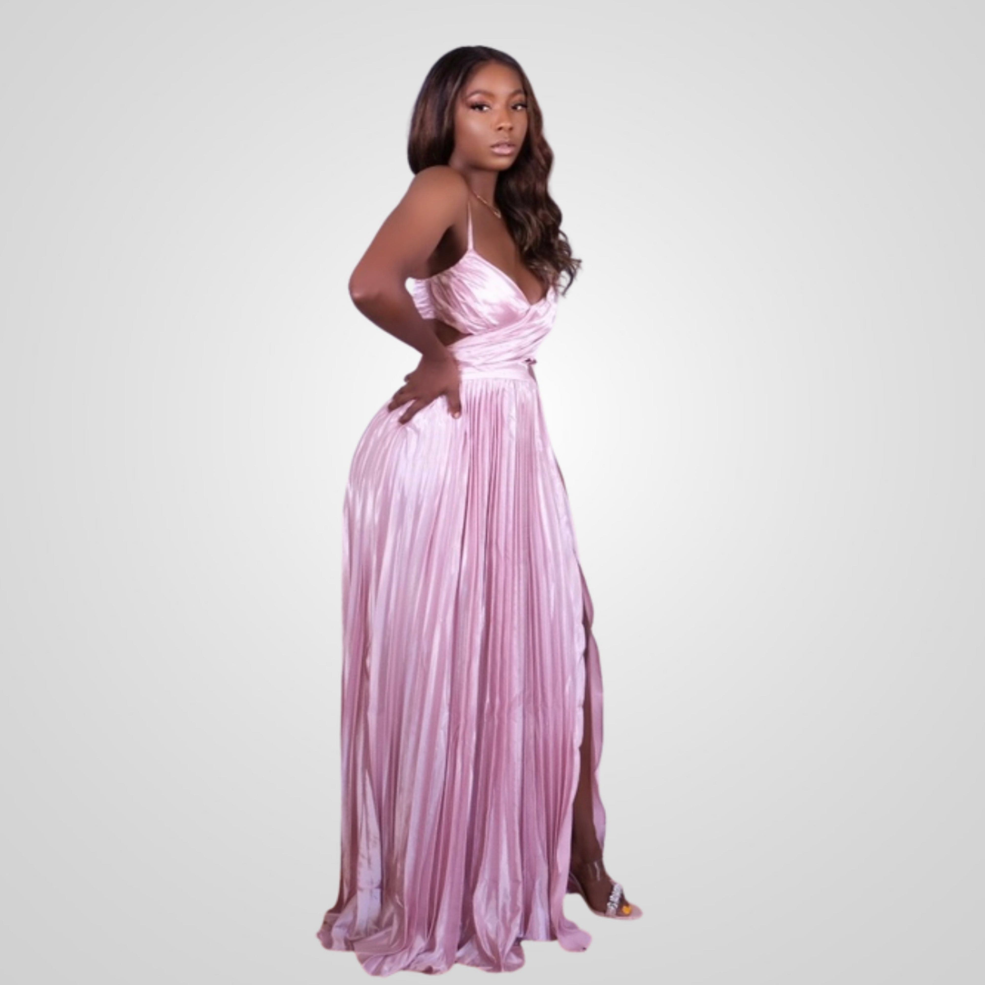 Experience a moment of pure elegance and allure in our HAVING A MOMENT Pink Satin Maxi Dress. Designed for goddesses, this dress features a pleated skirt, sexy cut-out wrap top, and adjustable straps for a stunning look. This dress is meticulously crafted for those who want to exude confidence and grace while making a bold fashion statement. Let's delve into the enchanting details of this captivating dress. Order yours today and experience the perfect blend of luxury, sensuality, and timeless elegance.