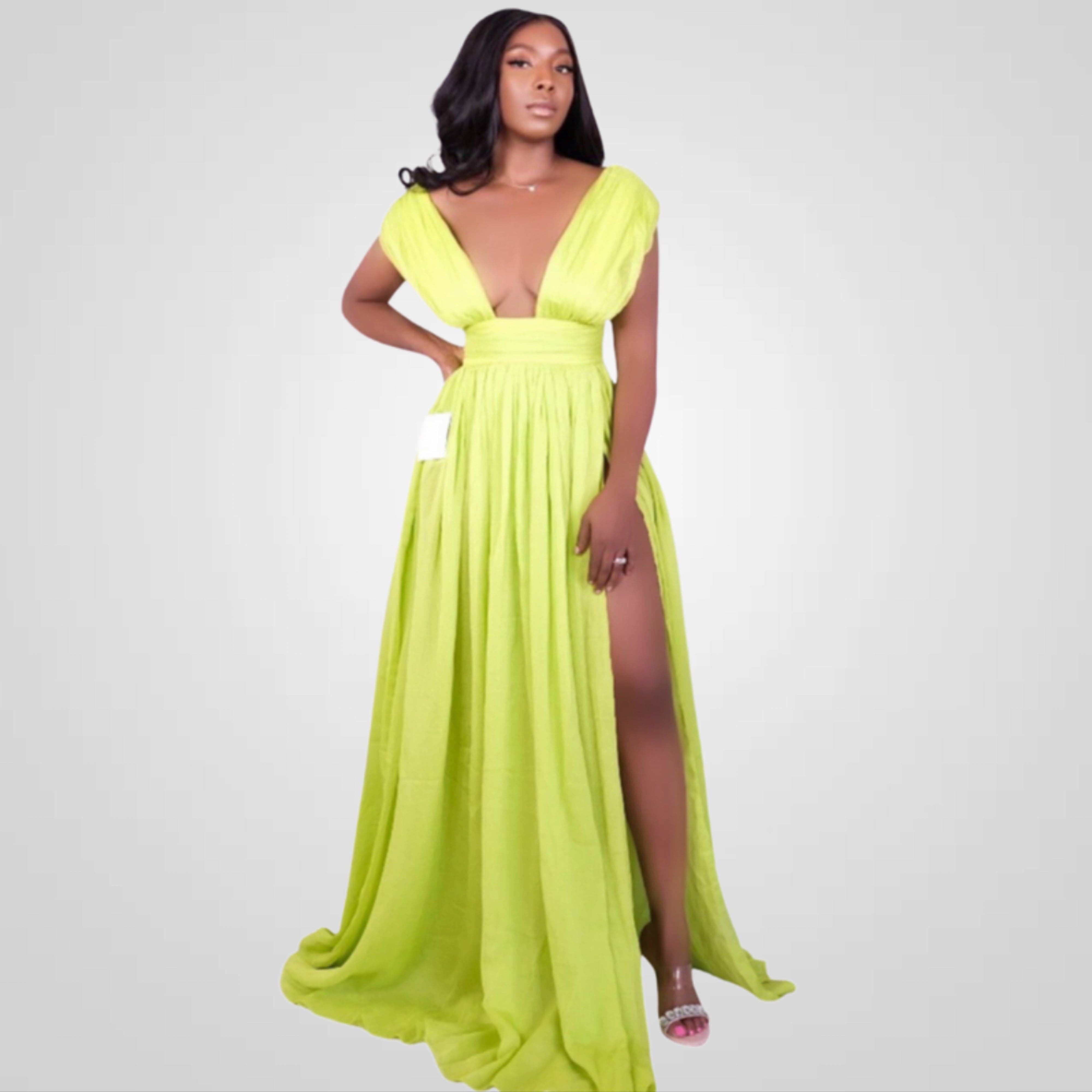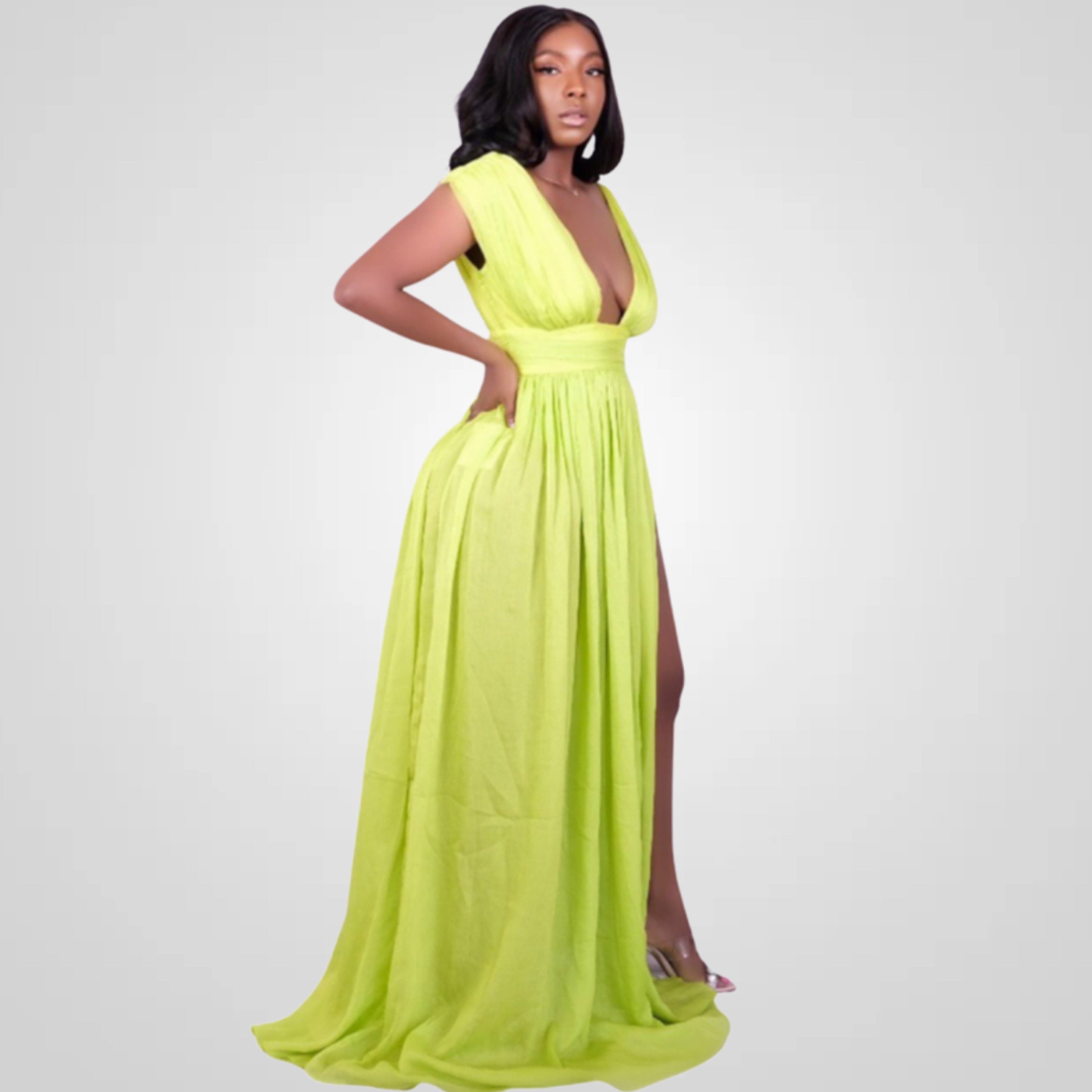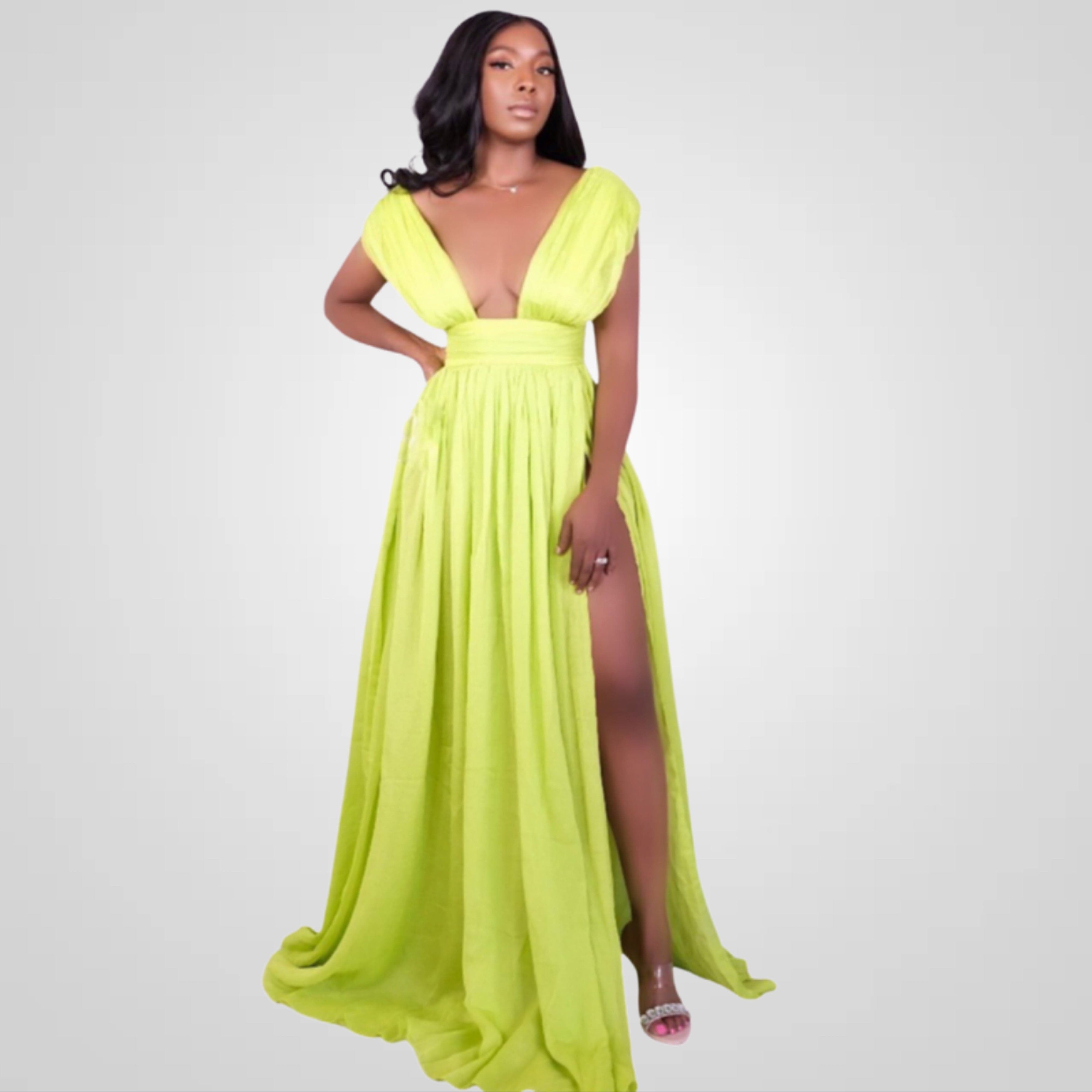 Introducing the epitome of elegance and vibrancy - our Her Majesty Lime Silk Pleated High Slit Maxi Dress. Crafted to perfection, this dress is designed to make you feel like royalty. With its mesmerizing lime hue and exquisite features, it's a showstopper for every occasion. Order now and let the world witness your majestic elegance.