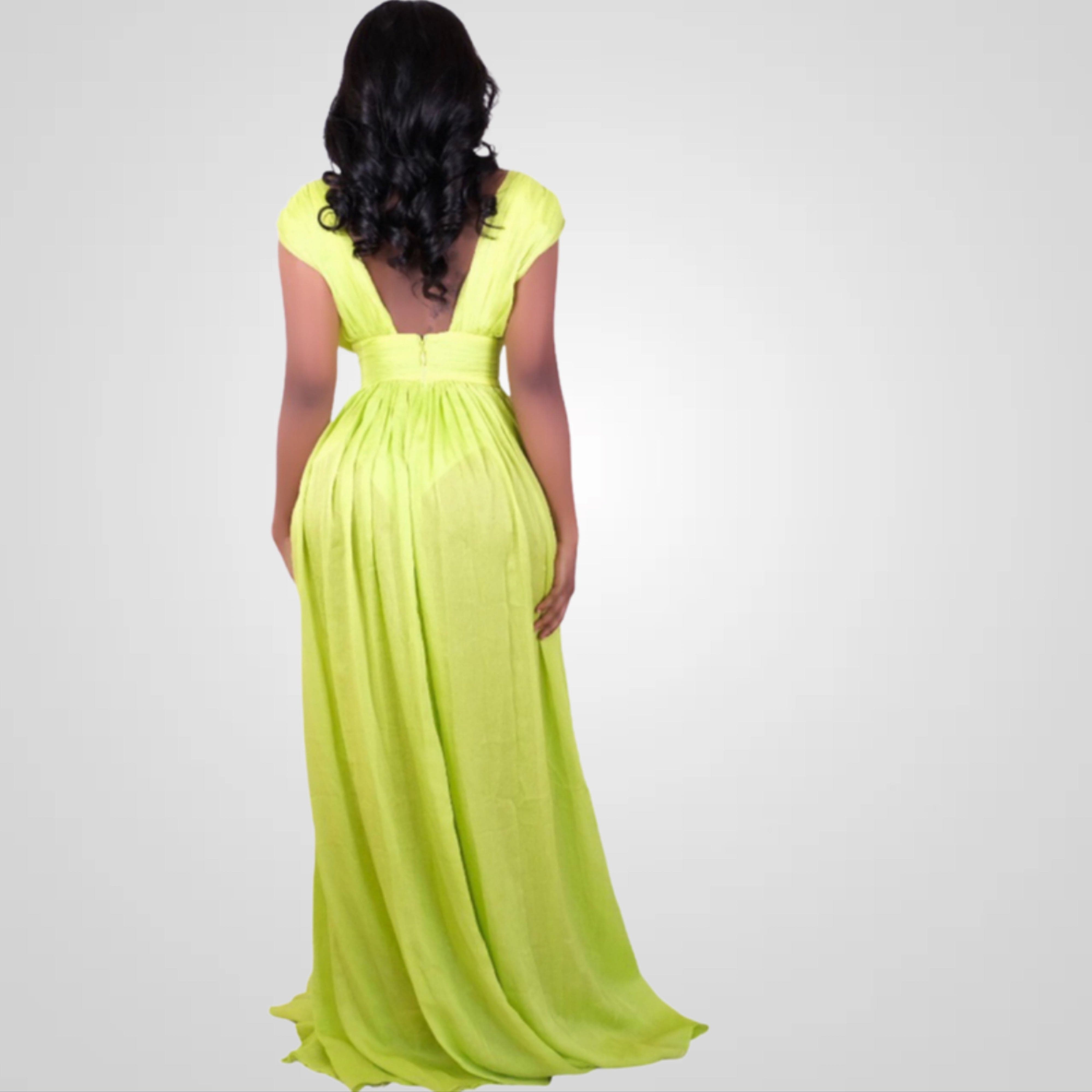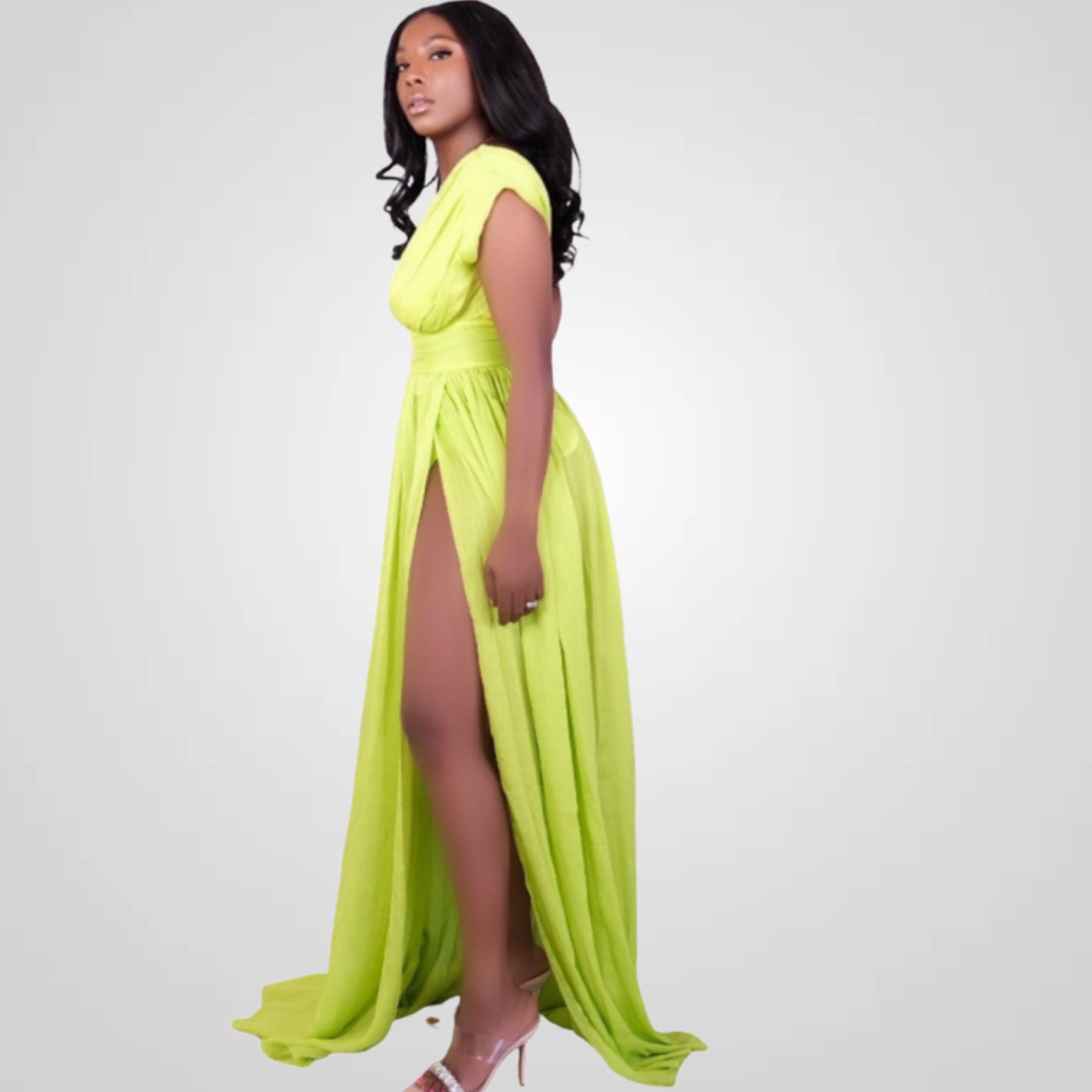 Her Majesty Lime High Slit Maxi Dress