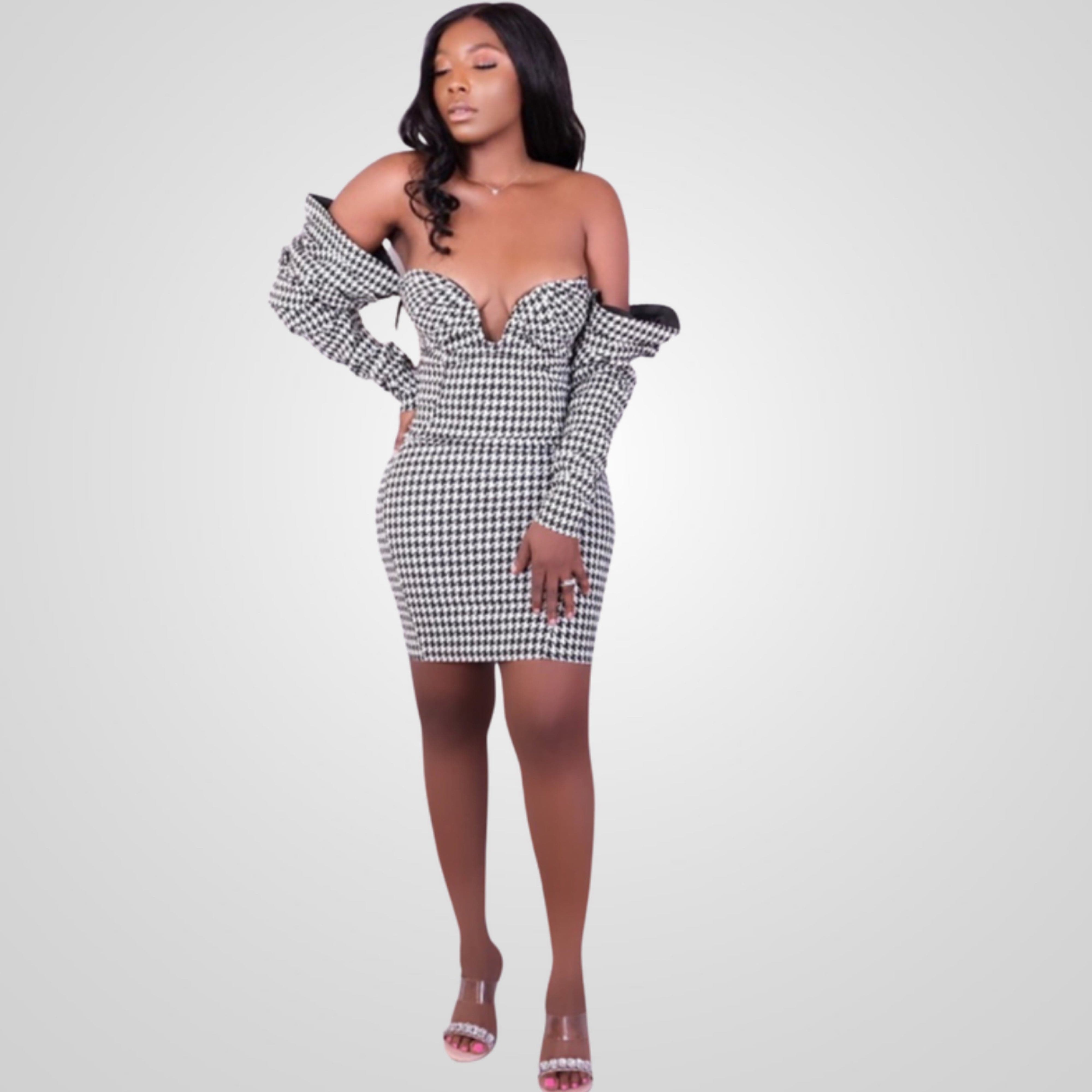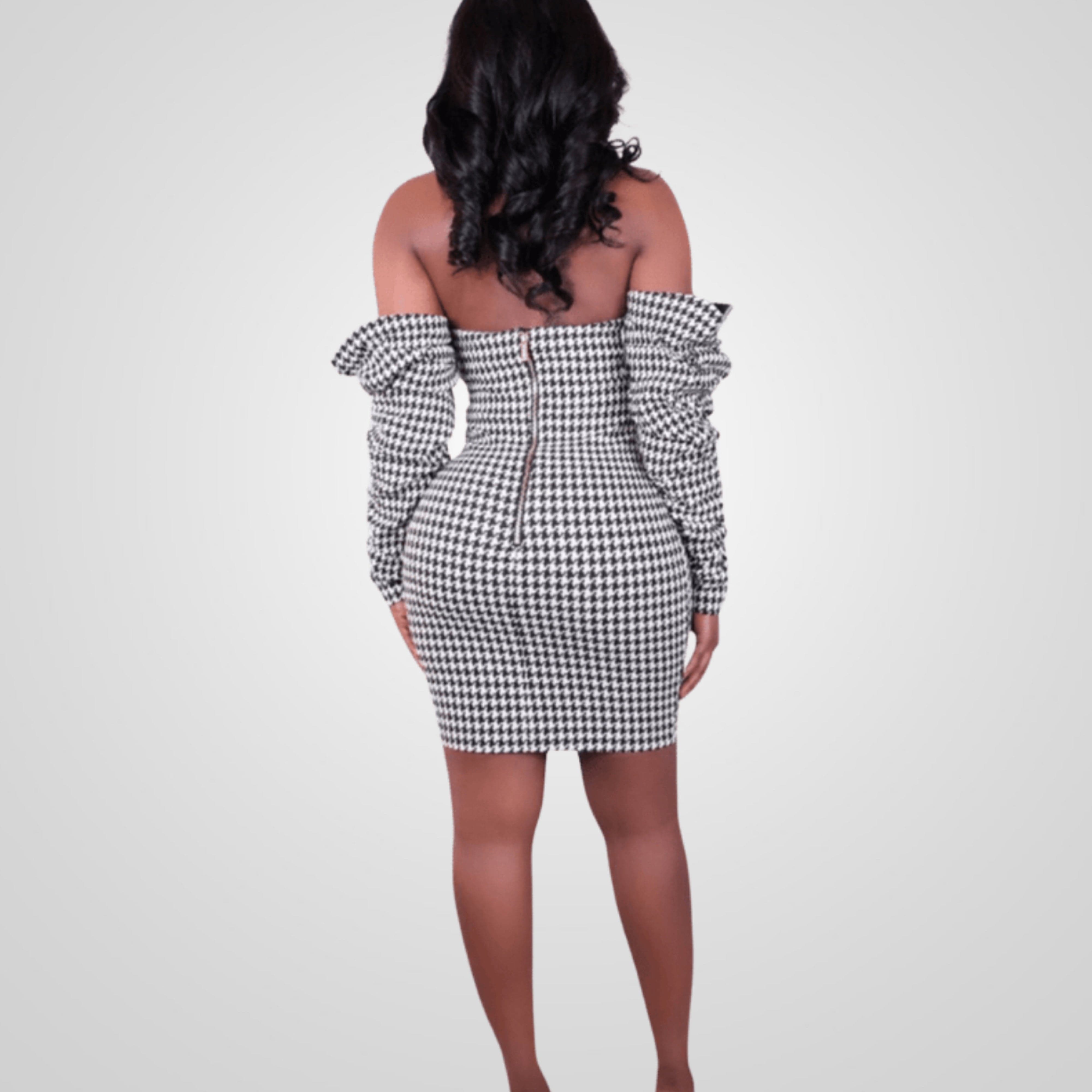 As the leaves change and the air becomes crisper, it's time to embrace Fall fashion at its finest with our UNSTOPPABLE Houndstooth Dress. This extraordinary dress is designed to make you feel confident, elegant, and undeniably stylish as you step into the new season. Cut from a stretchy woven Houndstooth fabric, UNSTOPPABLE showcases the perfect blend of prints, fabrics, and textures that define this season's trends. With features like an exposed zipper, plunging neckline, wire cups, and Victorian-style puff sleeves, this dress sets a new standard for Fall fashion. Whether you choose to wear it with nude heels or black combat boots, UNSTOPPABLE is ready to set your style apart from the rest. Let's delve into the captivating details of this remarkable dress. Shop Now!