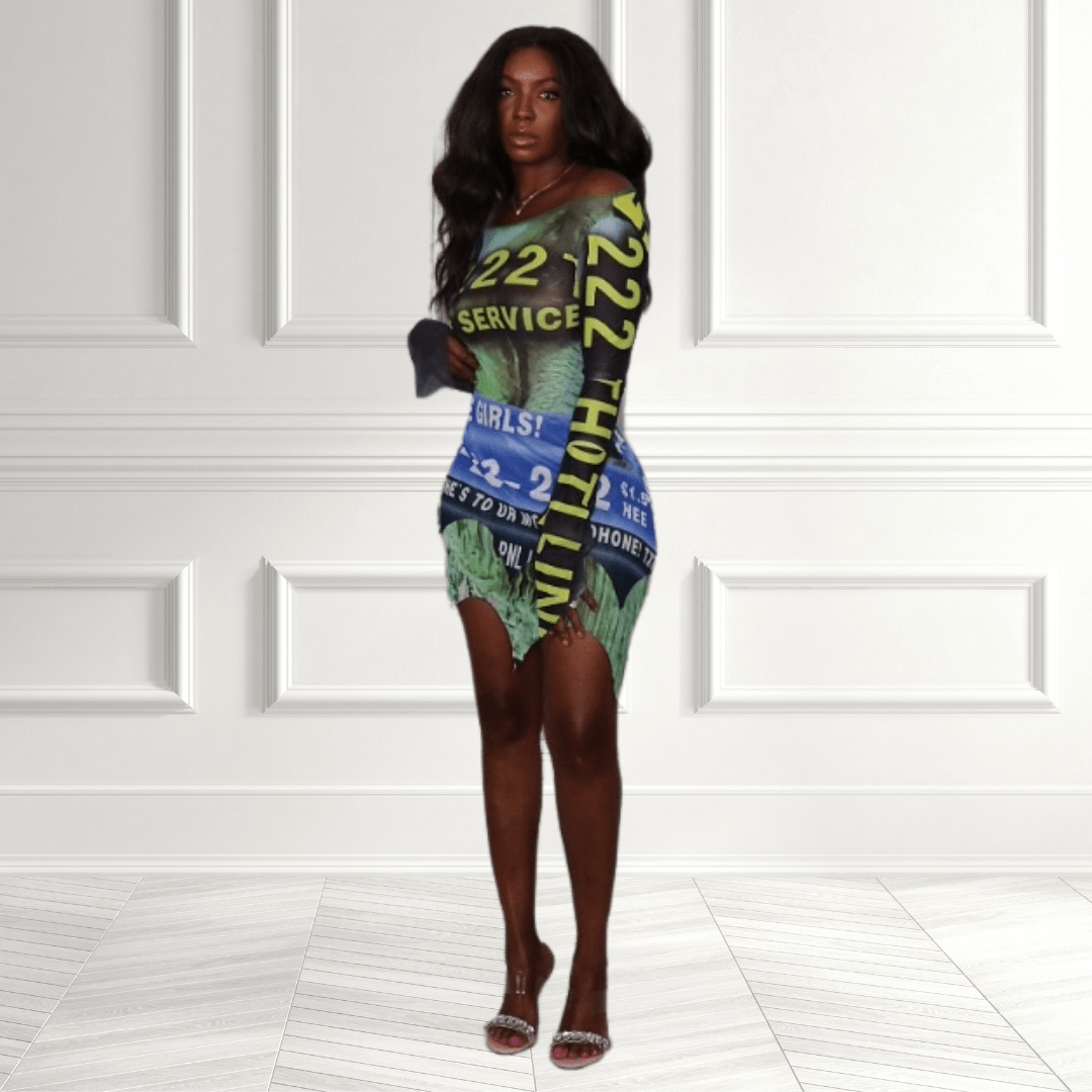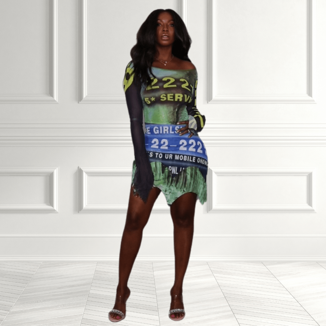 Upgrade your wardrobe with our Letters Mesh Flared Sleeve Dress. Embrace the fierce vibe with mesh fabric, flared sleeves, and tie-back detailing. Our Letters Mesh Flared Sleeve Dress is a versatile choice that's suitable for various occasions. Order now and experience the allure of this fashion-forward piece.