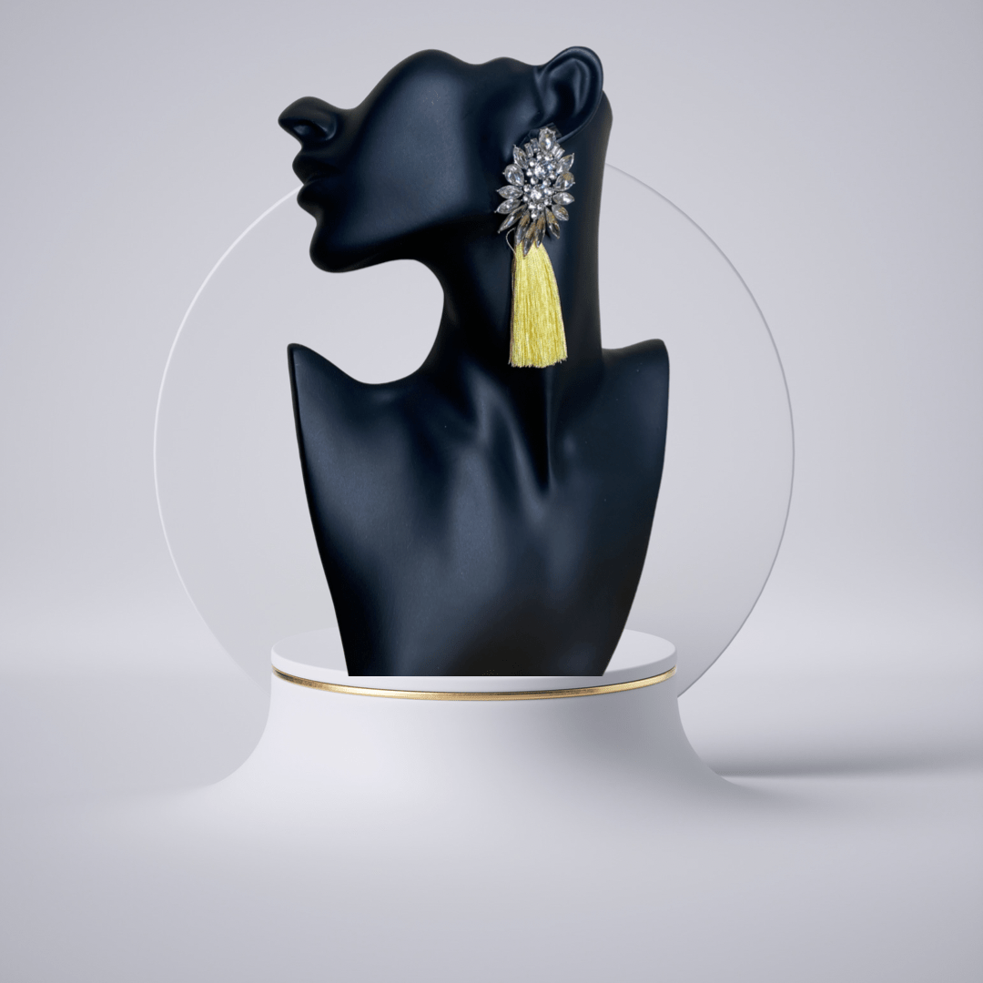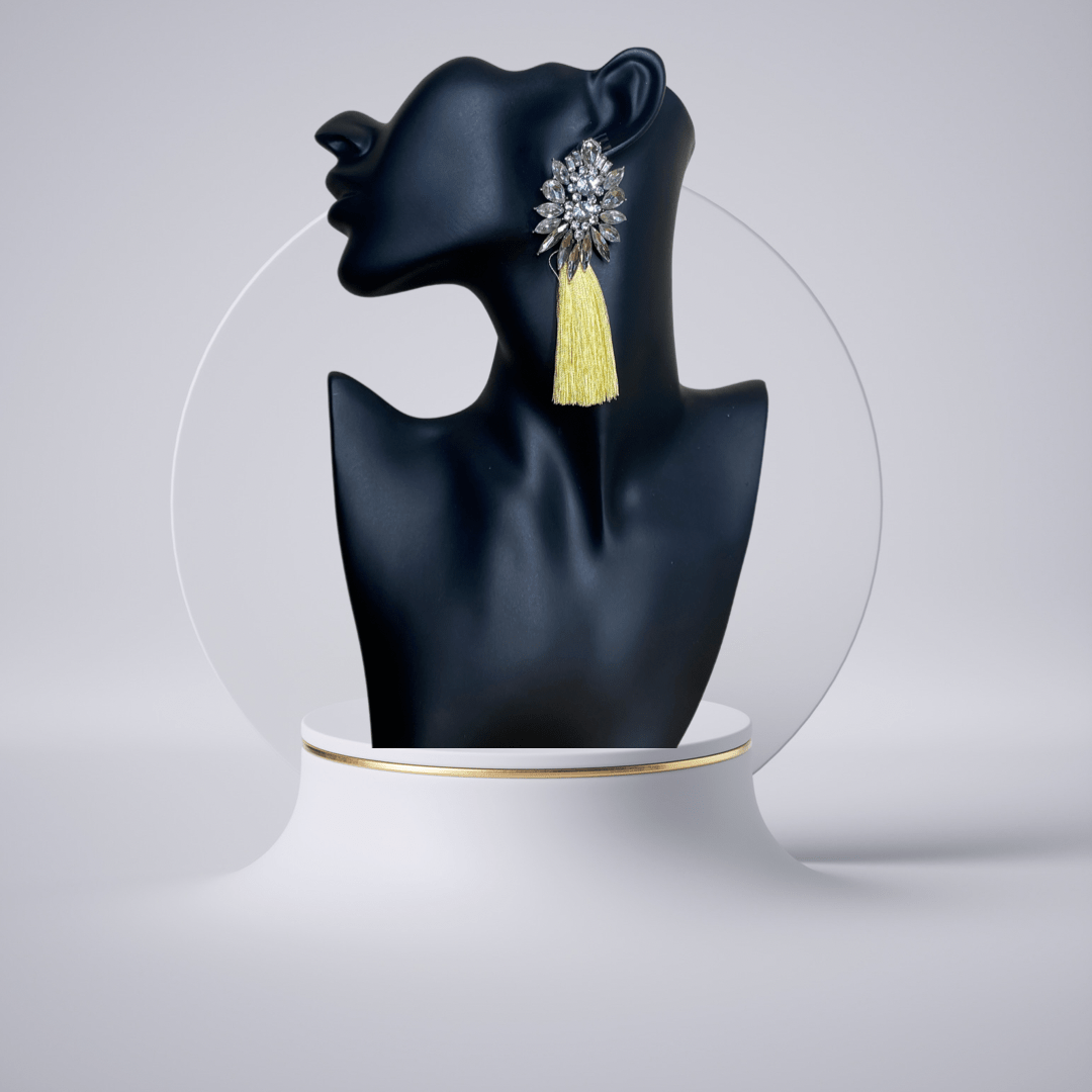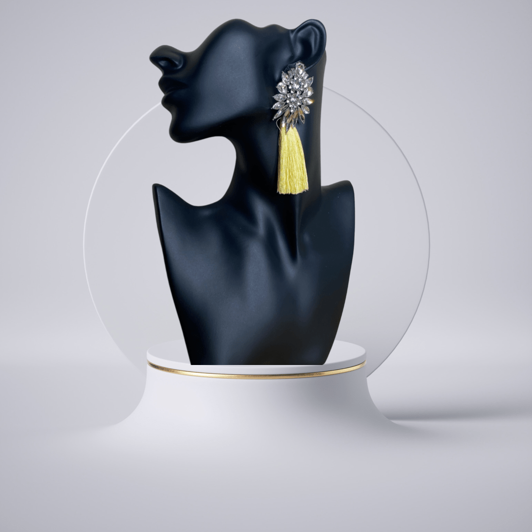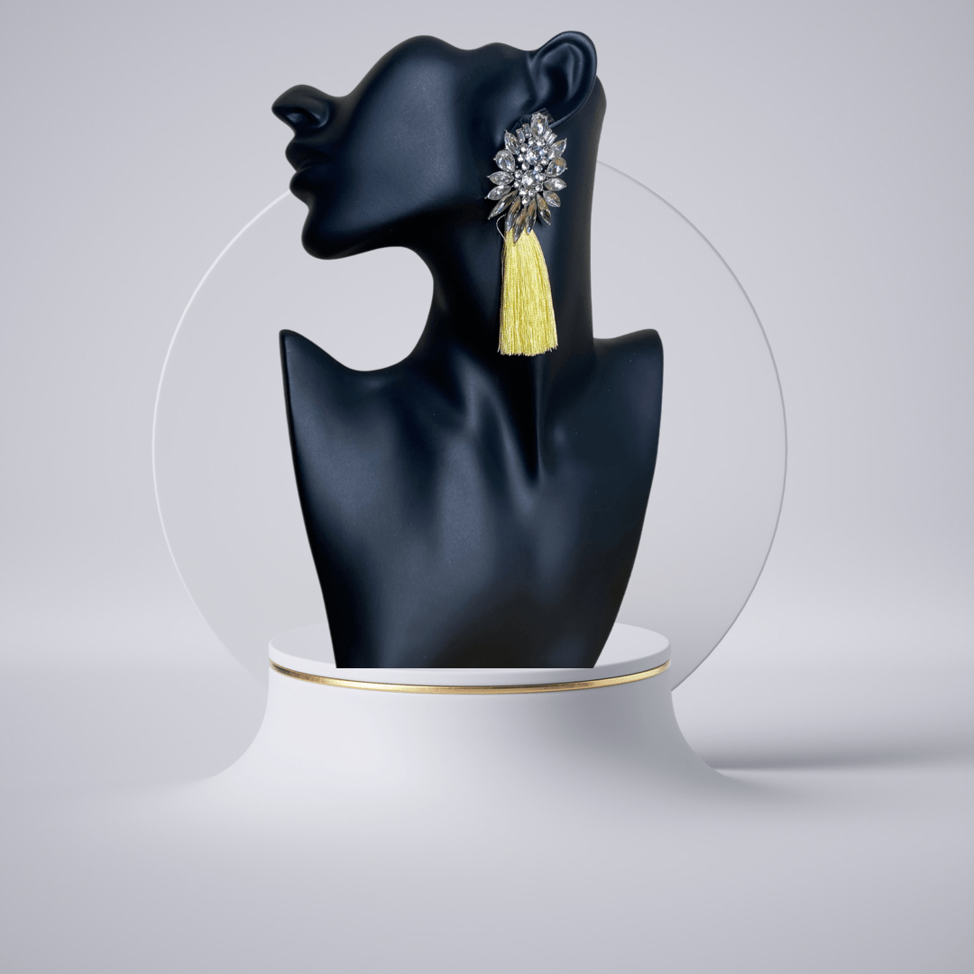 These statement earrings are sure to make your occasion look to new heights. Featuring a silver crystals material with tassel detailing and a pop of color design, we're obsessed. Simply add to your occasion fit for a luxe finish.